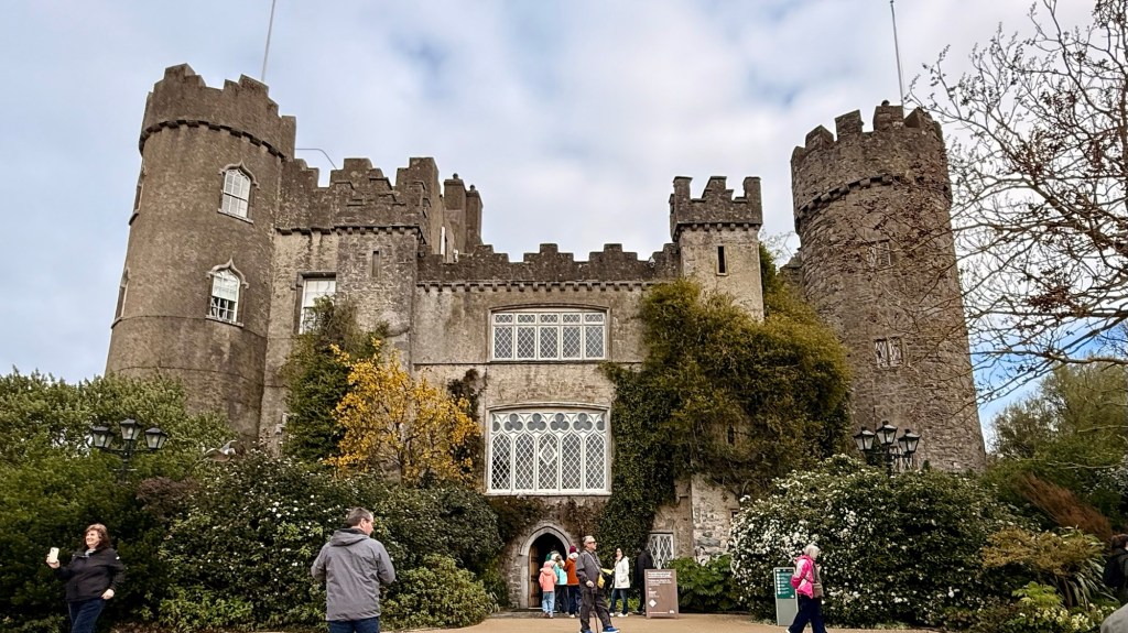 First stop is Malahide Castle-built in 1066 by the Normans that invaded the country …. sits on 200 acres of land. The Talbots are the people that owned and lived in it. King Henry 2 gave it to lord Talbot. It is 4 floors. The bottom is where they kept the animals.