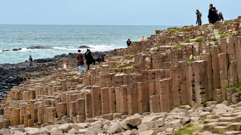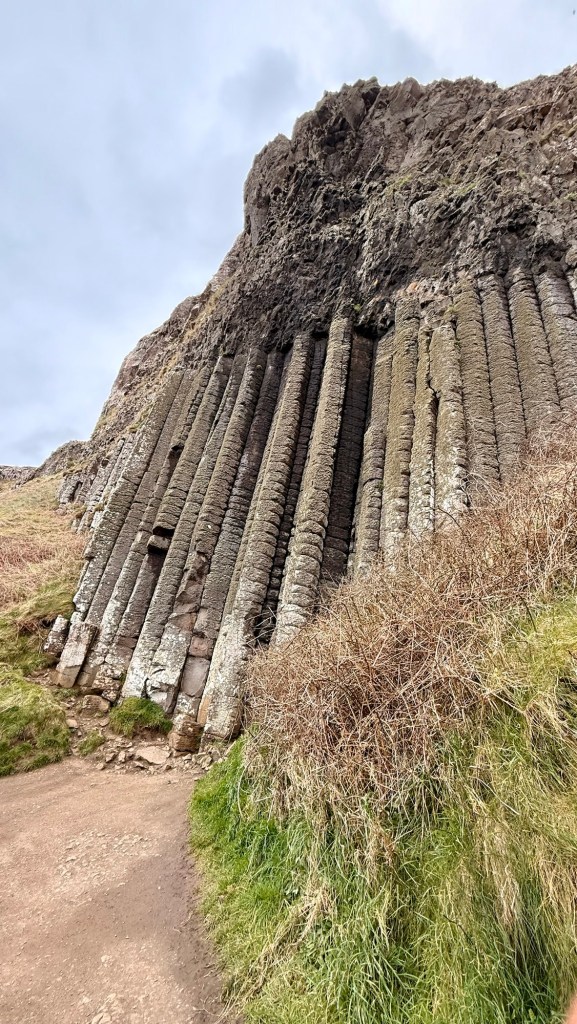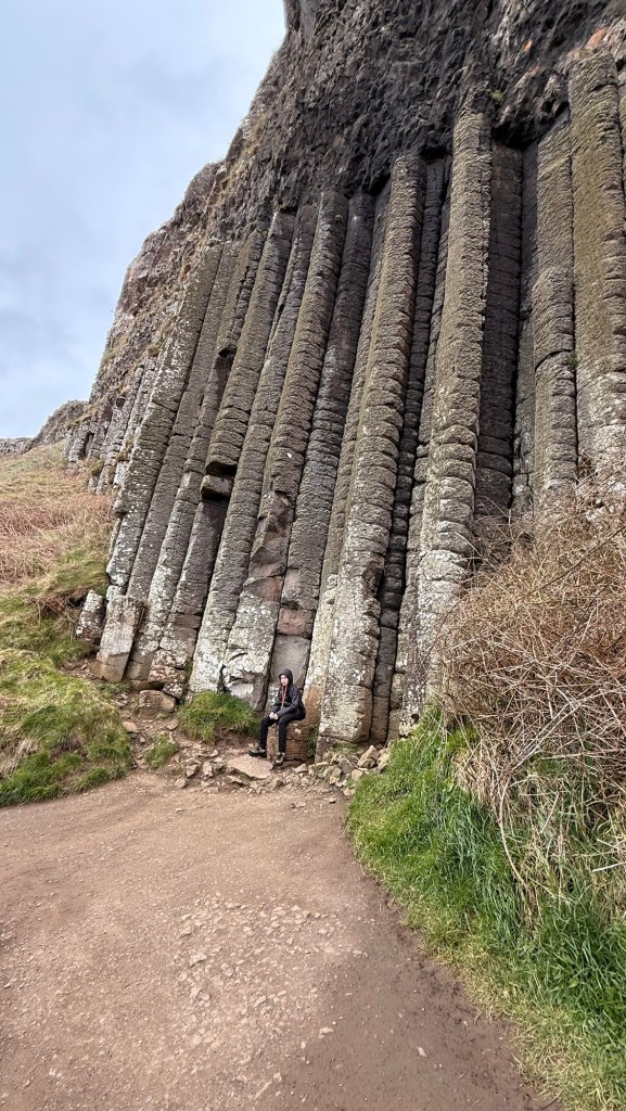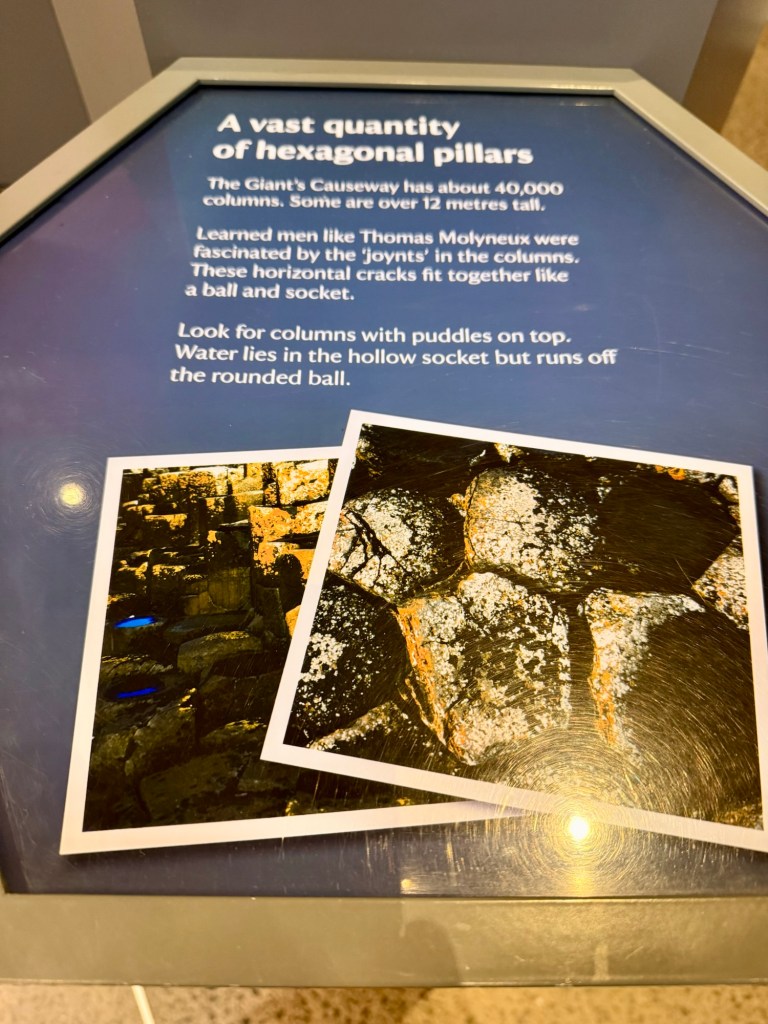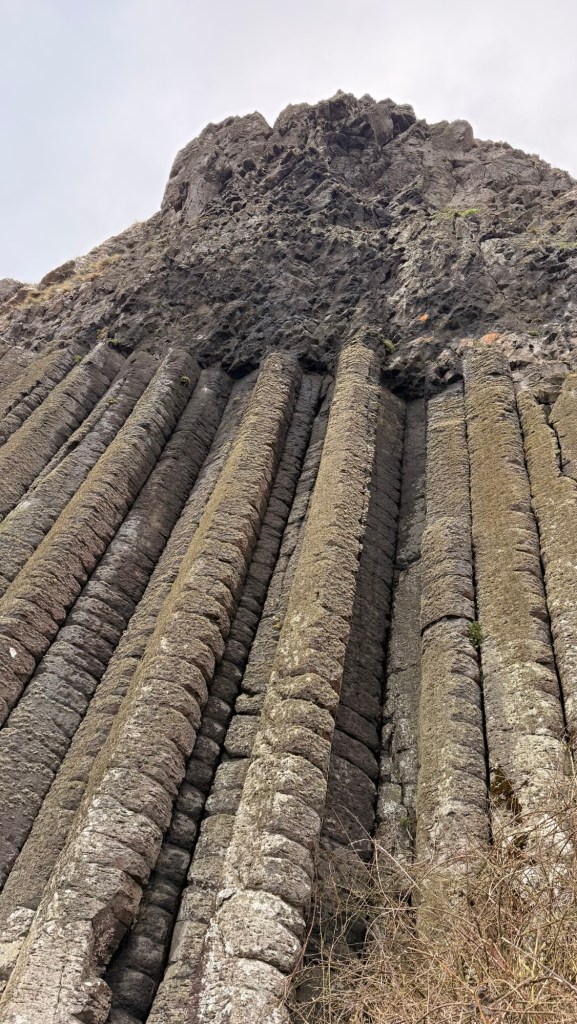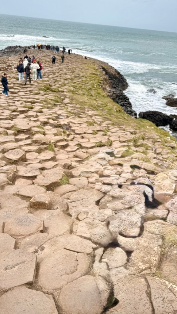 Giants Causeway are Hexagonal basalt stones left from when volcanoes . Only place out of 3 places in the world…. India, Israel and here where this occurred …. These are the only ones that stand upright. 20 miles from Scotland