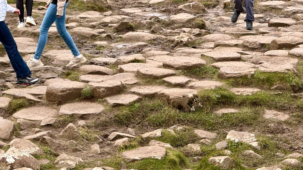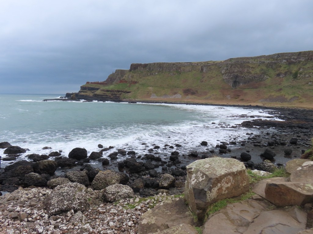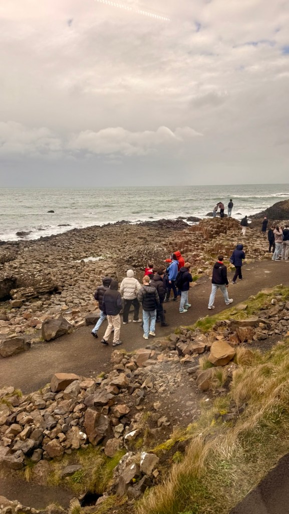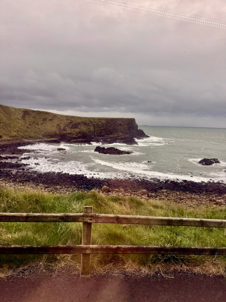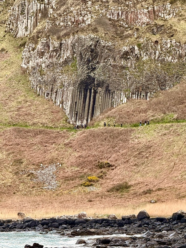 Giants Causeway are Hexagonal basalt stones left from when volcanoes . Only place out of 3 places in the world…. India, Israel and here where this occurred …. These are the only ones that stand upright. 20 miles from Scotland