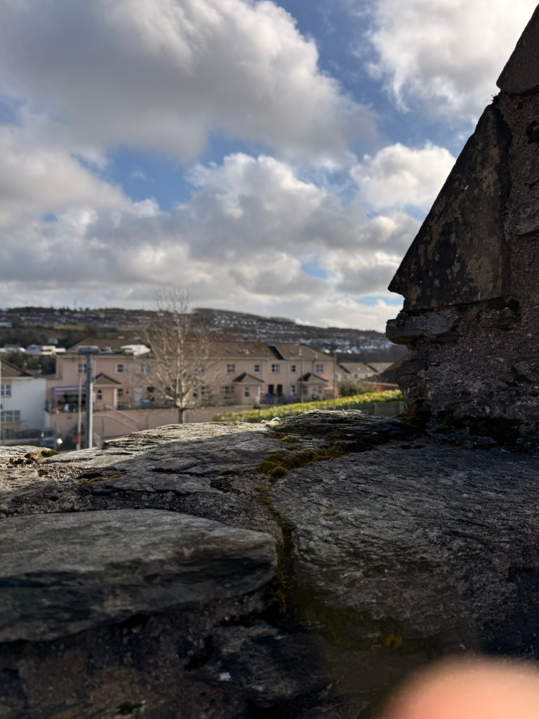Round tower was the prison tower. In 1599, a cannonball is stuck in wall when the British lead by the Earl of Essex attacked the castle…. It was the only really successful attack. The family were allowed to back in but after 2 other attacks, one in 1650 when Oliver Cromwell attacked they surrendered and they never moved back in .