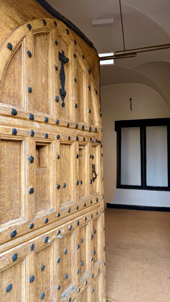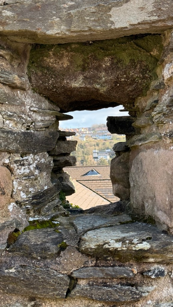 Holes in wall were where the beams were used for the living space above and the floor for the animals below (which helped to keep the people warm). At one spot pointed out to us, that there was the Michicolation— murder hole…. Where if the invaders made it through the rest of the defences, had boiling fat poured over them to slow them down. Ouch!!!