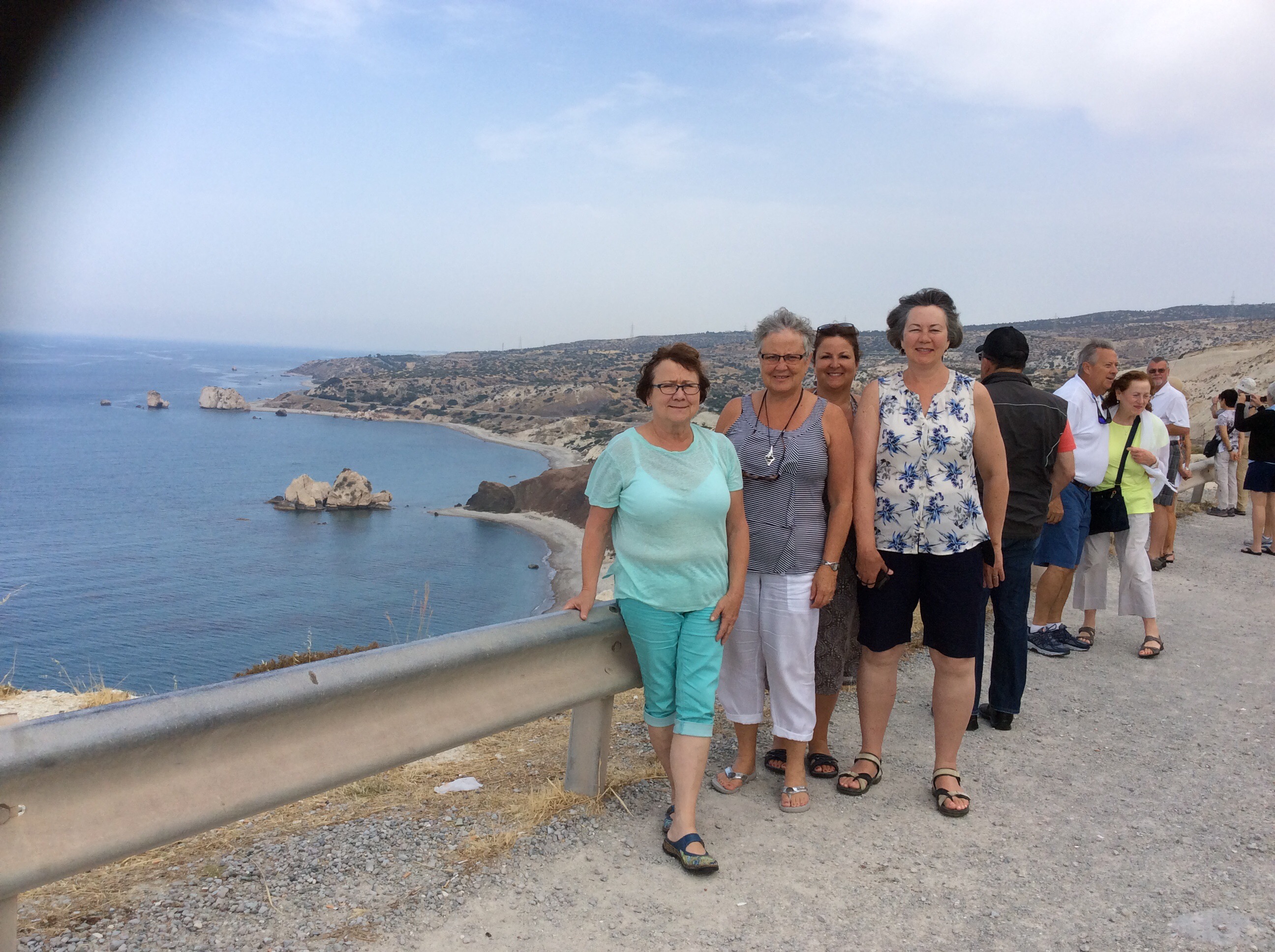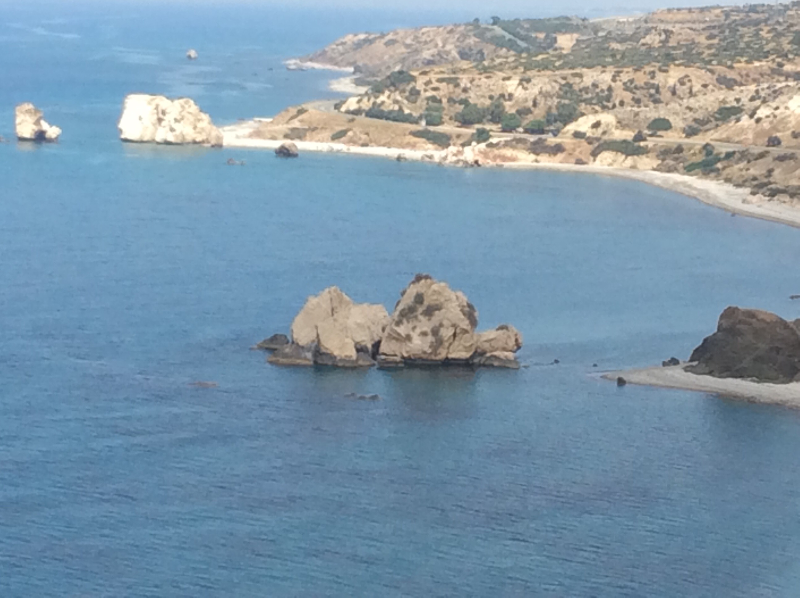 Limassol, Cyprus… In south of Cyprus 9:30 and its already 26 C. Janet, Joyce, Marion, Jeanette and myself are going to Pafos as well as another place today. I notice that Janus is on the dock. Janus is the resident artist’s interpretation of something or other I think a God. It shows up in different places every day. They drive on the left here because the British influence who were here until 1960 when the country gained independence. Traveling to a plantation, passed british military base to birth place of Aphrodite and then to Pafos, the home to Dionysus. There is castle here built in 13th century by the Crusaders. We visit the Tombs of the Kings (it looks like houses of that period). One can ski on Cyprus from Jan. to March. 180,000 live in Limassol. It is the main port. Carnivale, is the 2nd largest in world after Brazil.. Greek Orthodox Christians live in the south, Turks in north where Muslims live. Inhabitants from the Greek side need passports to go to Turkish side. It is called the Island of cats…stray cats were introduced to get rid of snakes. Citrus trees grow in previous swamps as in Israel. Commandaria name of sweet dessert wine that they make here. Ancient city built by Greeks to island of Aphrodite. In 12 century BC. In Greek, hypocrisy….named for masks of actors, athlete means hard work and gymnastics means nude……all makes sense huh? 340 days of sunshine a year. Eucalyptus and acacia trees were brought by British. After giving independence, the Brits kept the base. Before Brits were the Ottomans…… for 300 years. Cyprus means copper. Total population is 800,000. The Turks in the south lost their homes when all the Turkish Cypriots moved to north. In 1974, 200,000 Greeks were chased out of the North by the Turks ……to the south. Nicosia is divided city. Petra Tou Romoui …. Alektora….Home of Aphrodite comes from name of foam. Volcano god (Vulcan) married Aphrodite (means love) but the love of her life was Adonis. Pafos will be the “Cultural City of Europe in 2017 by UNESCO. In 9000 BC peoples came from Caanan to Cyprus. From first century BC to 3rd. century AD, narcissus Mosaics in house of Dionysus Tomb of kings from 3bc to 3 ad Scarfogus Doric columns+ tri..,. I have someone following my blog by the name of gramma2010. Would you please let me know who you are? So many pictures of Cyprus are on my phone