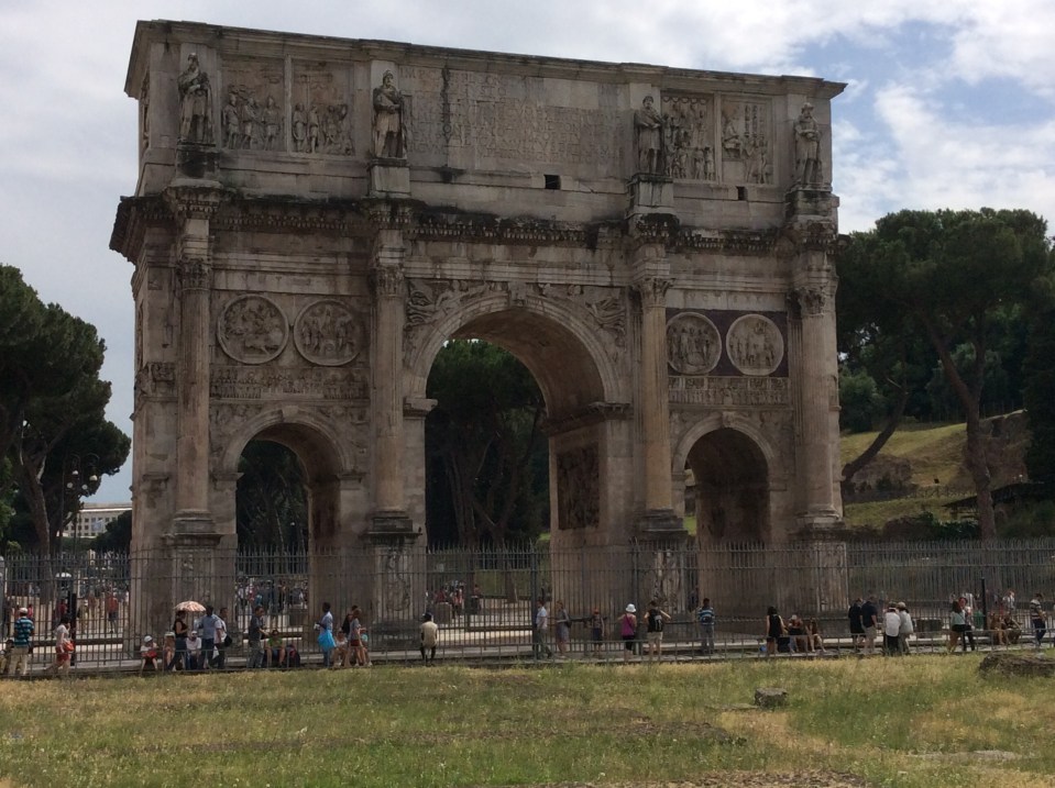 Coloseum former name was Flavian Amphitheatre built in 80AD., it would hold 50,000 spectators. Gladiators were condemned slaves and prisoners. Survivors became heroes. Constantine arch was built in 315AD when Constantine converted to Christianity. Circus Maximus was 500 x150 ft with 2 sets of ruts where chariots would race.. Would hold up to 300,000 in bleachers on each side.