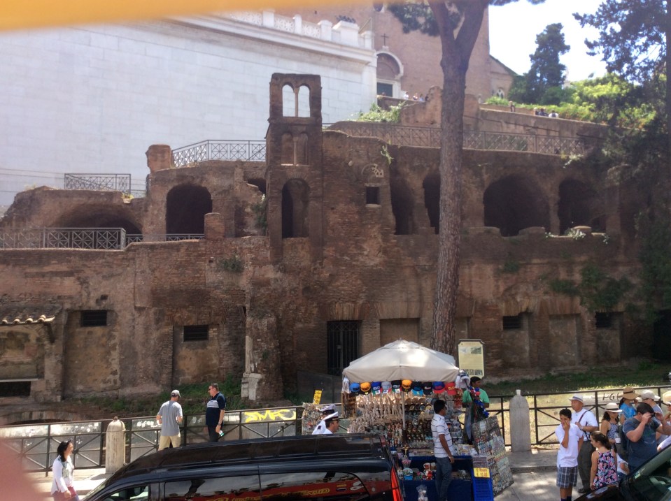 We were shown the Flori de Campo, which is regular marketplace by day …..and a lovely street that we definitely wanted to check out another day…..for shopping. Things seemed waaaaay cheaper here than the designer shops near the Spanish Steps. In interesting thing……in one place that we ate at, there was a glass covered hole in the floor that you could see what was left of a Roman bath. Very cool!