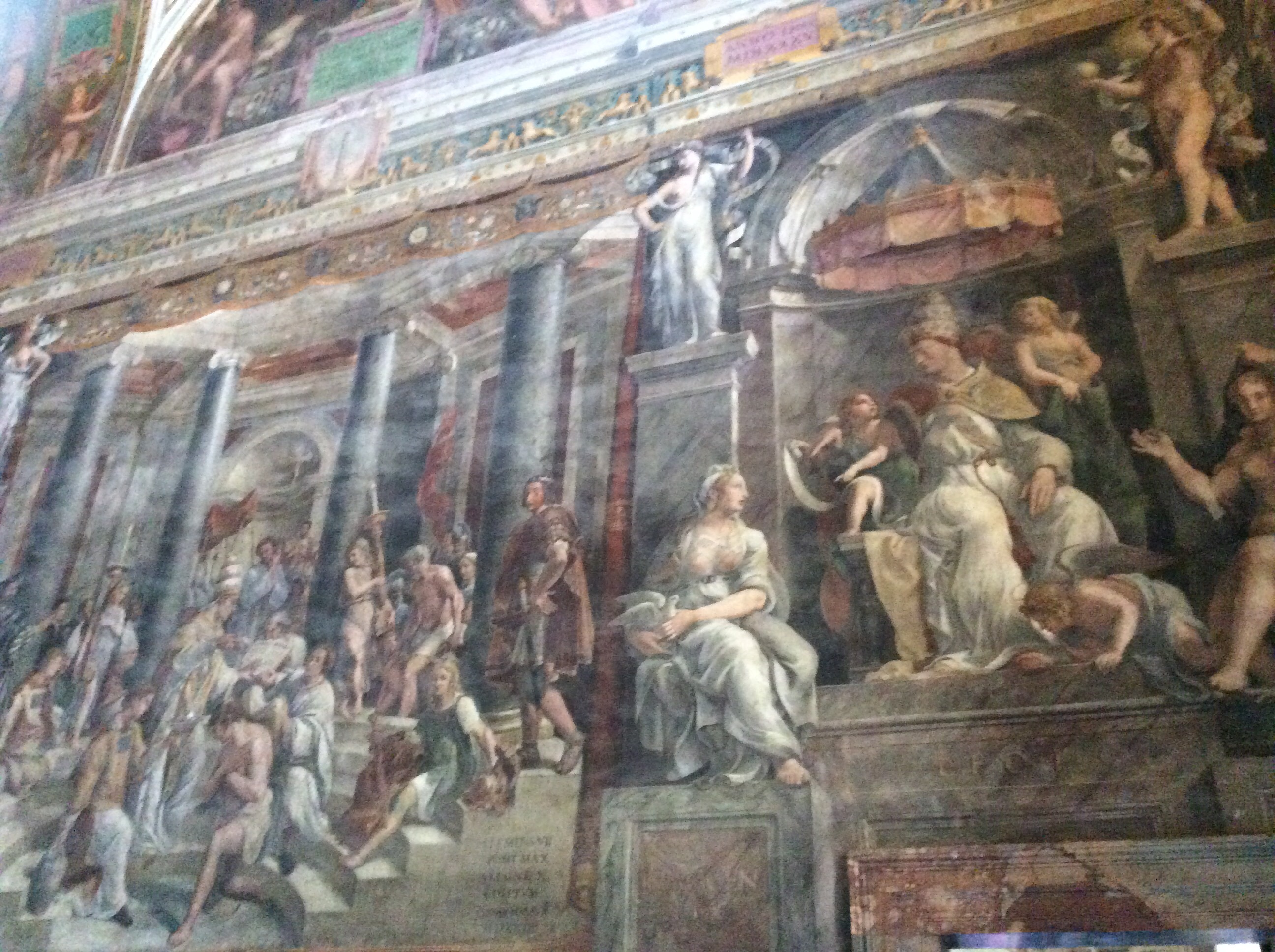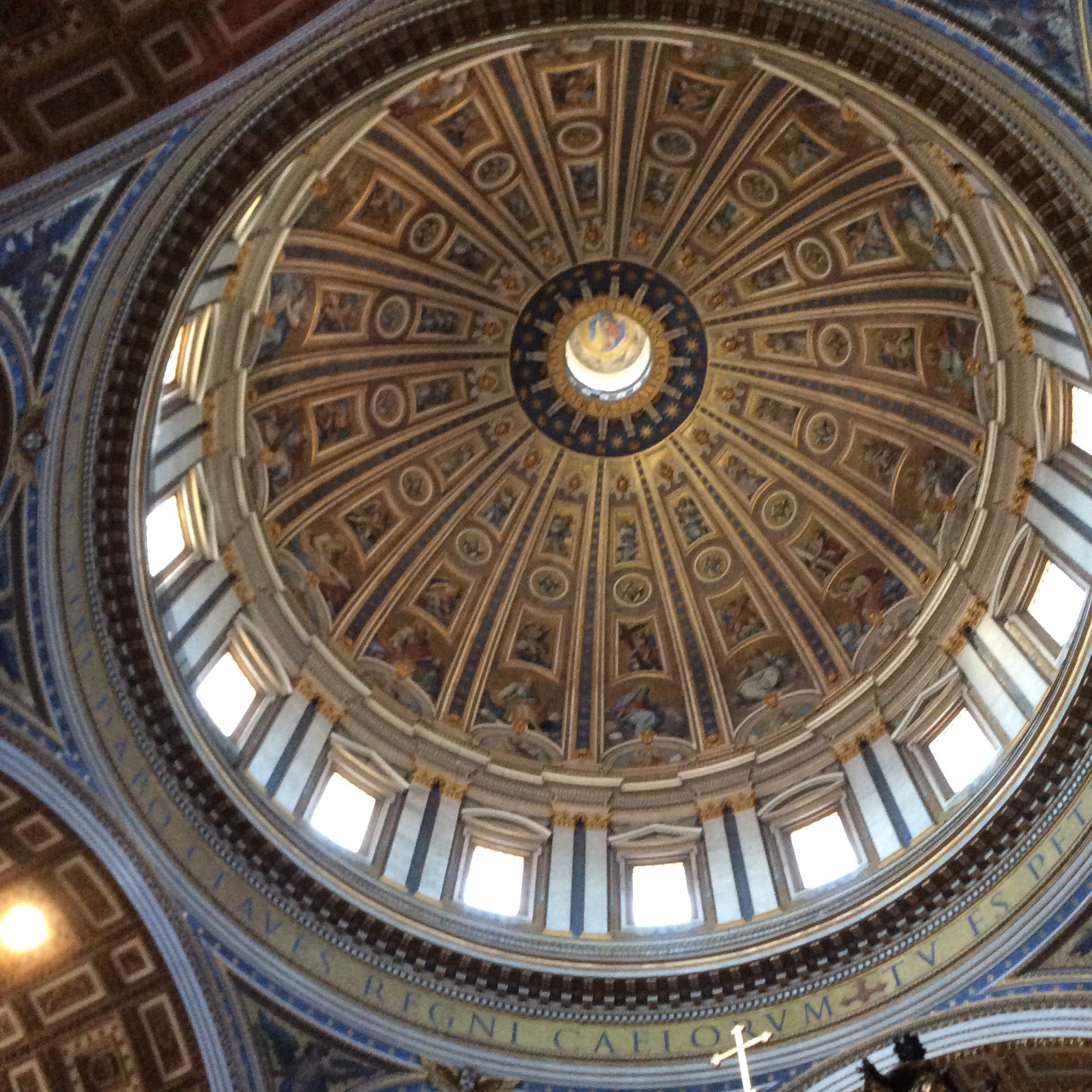 M. took over building the dome after Rafael died at 39… It is make in mosaic. The lettering around the inside of the dome only is 2 xs our guide’s height.