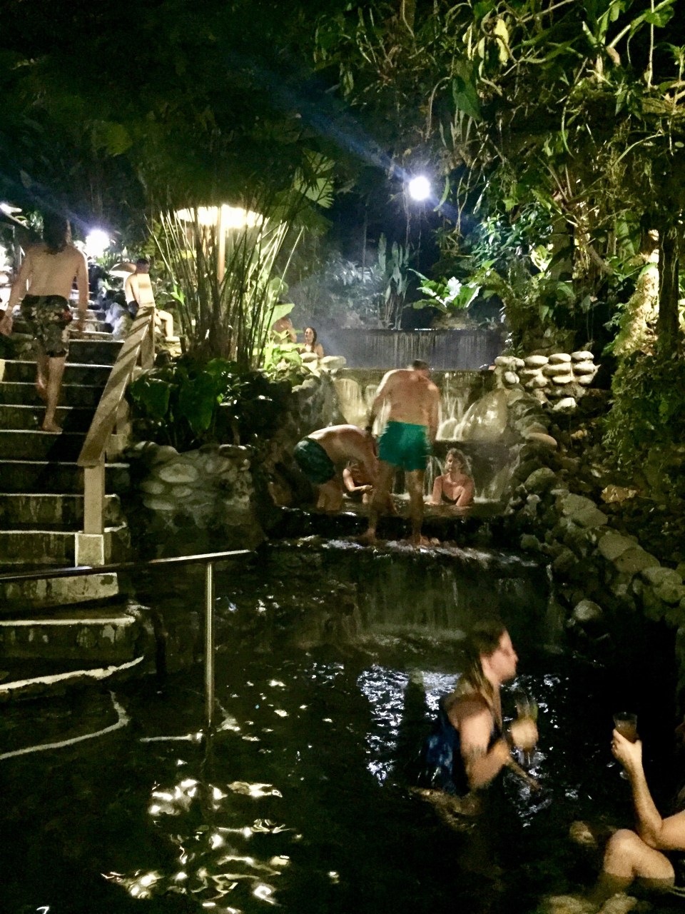 Later in the evening we three went to “EcoTermales” mineral springs….a natural hot spring. The water is heated by the volcano. Oh my was that wonderful! Hot water pools, cool water pools and waterfalls pounding on sore muscles.. pure heaven.