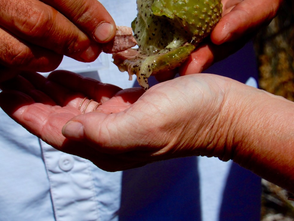 Inside the fruit looks like kiwi but mushy. It much more sour. It was greatly valued for preventing scurvy.
