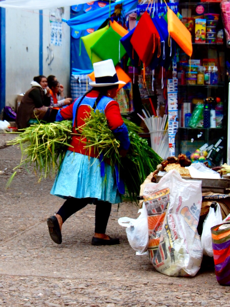 Before going to Ollantaytambo in the afternoon, Marilyn, Jeanette, Kathryn and I took tuk tuks (called motocito here) into Urubamba for a little tour. Our driver was a young woman with her 3+/- year old daughter. The village itself is nothing really to get excited about but it was fun to ride in the tuk tuks again. These ones looked like they’re souped up racers that could burn rubber. Not!