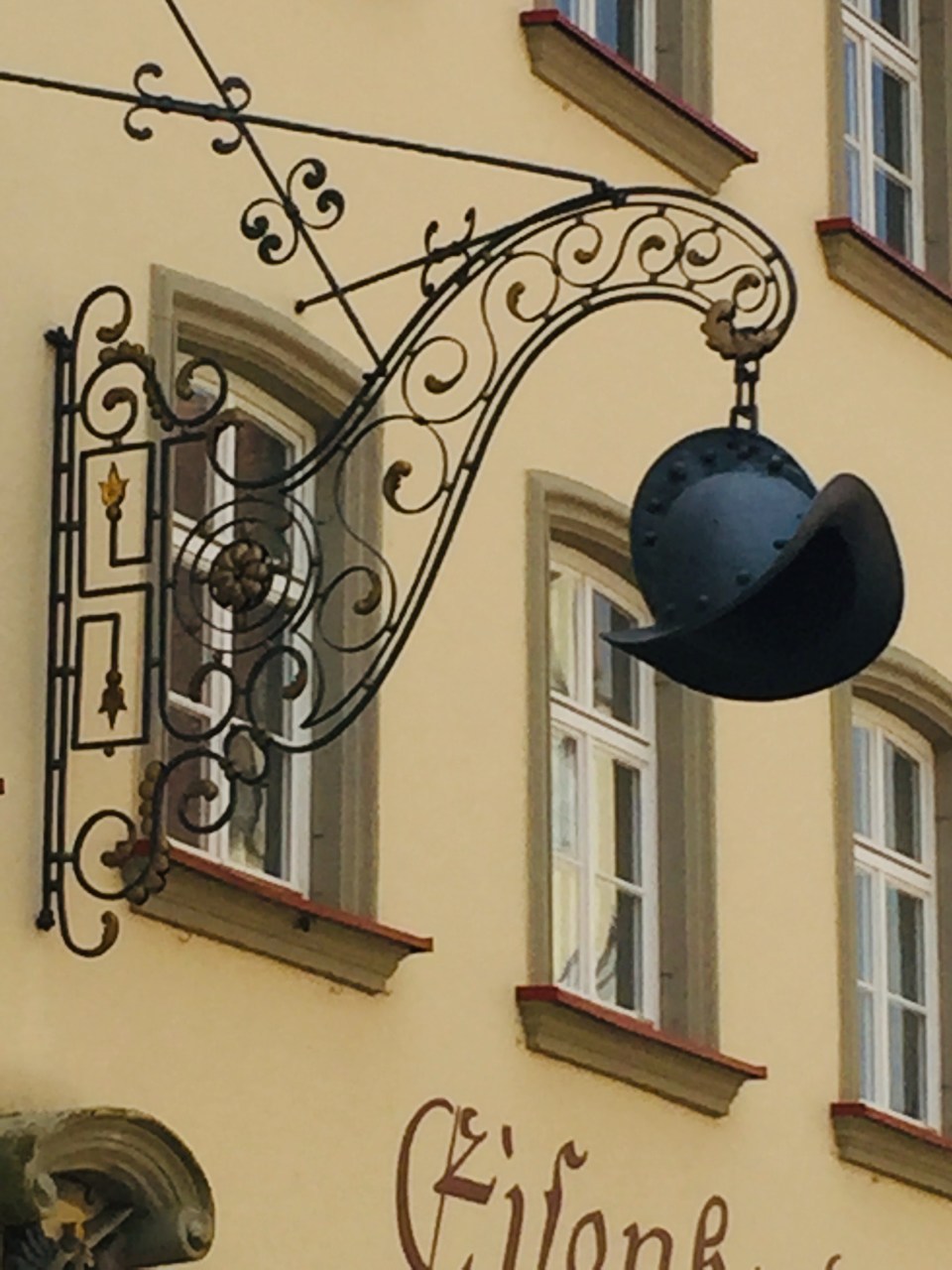 Store sign…. example of wrought iron with helmet from Middle Ages