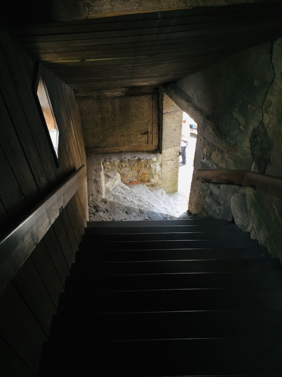 The stairs leading down from the wall
