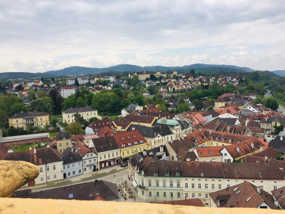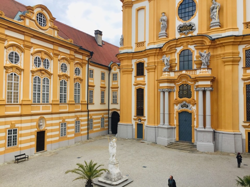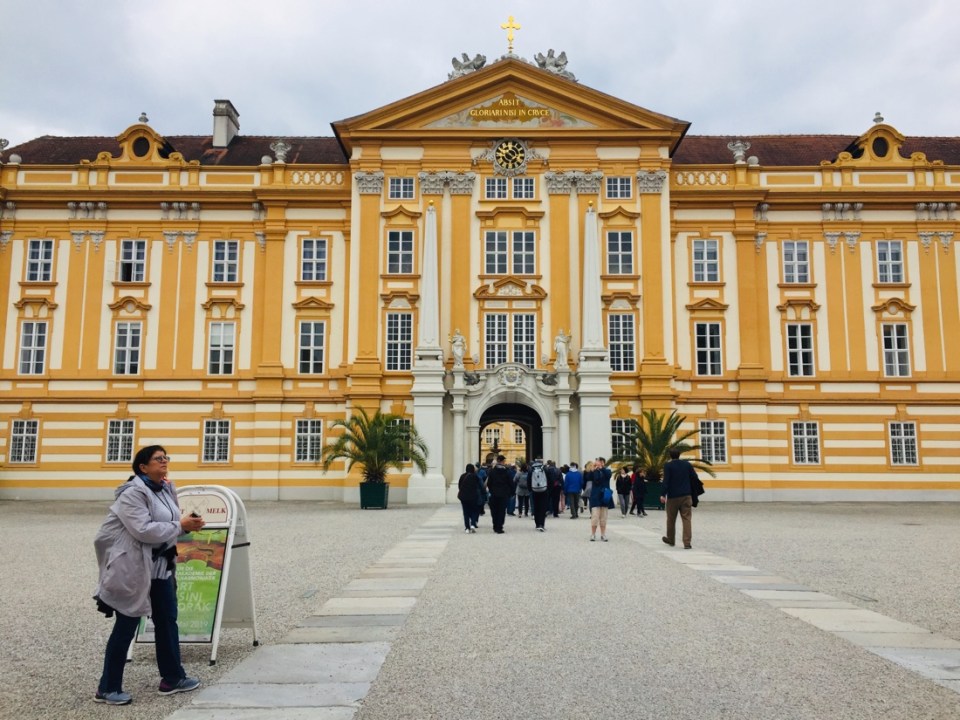 It was finished in 1739. It is a Benedictine monastery with 29 monks & 900 secondary day students that pay 90€/month to go here. By the way, it seems that all students only go until lunchtime or 1pm. I don’t know what time they start though. Pink is a typical colour of baroque so inside staircase was painted pink. Main hall 600 feet long was like a hotel. Guests came with 250 people in tow. Ceramic heaters… chimneys in walls …very large …moulded white. In 980 ad it was a fortress then was donated to monks. Crucifix 800yrs Old. Marble room isn’t really marble … dining room. Library is 12 rooms. This one … oh my!!! All handwritten! Incidentally, no picture taking is allowed…..sorry! So no pictures of the inside.