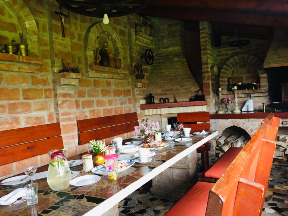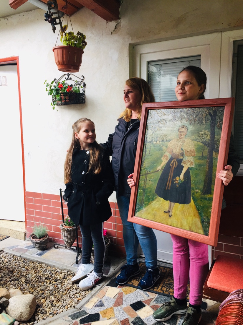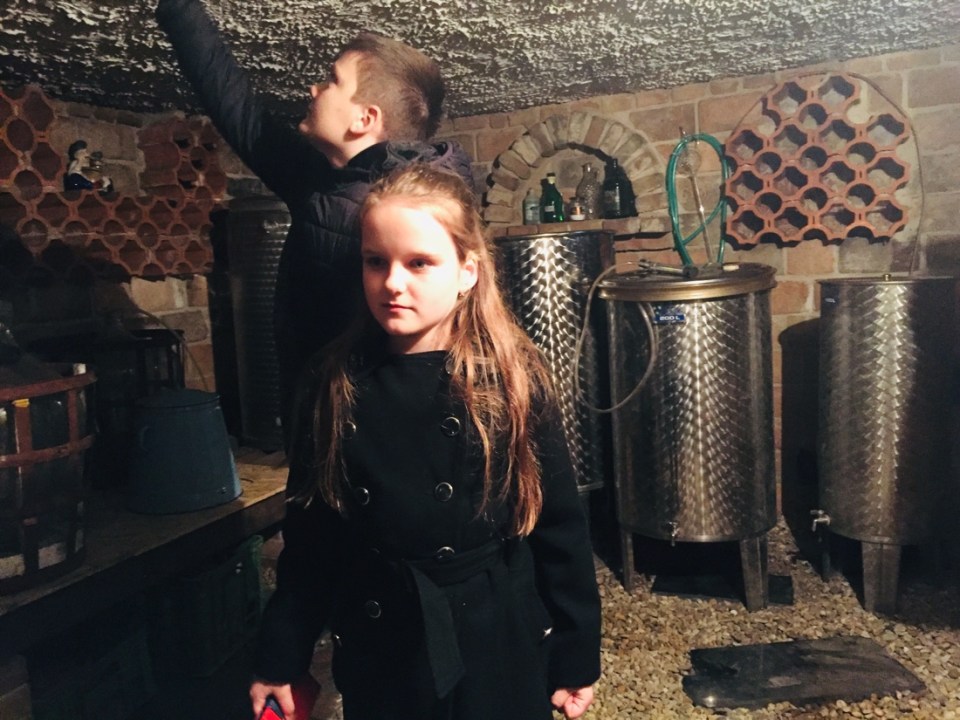 Very accommodating, mom spoke really pretty good English…. 3 kids and a husband who was away working inAustria because they make more money working away. They had a lovely garden and outside living space. Wine cellar with stainless vats…impressive. The family showed us a painting of the great grandmother. The mom and two daughters had the same huge blue, blue eyes as the gg.