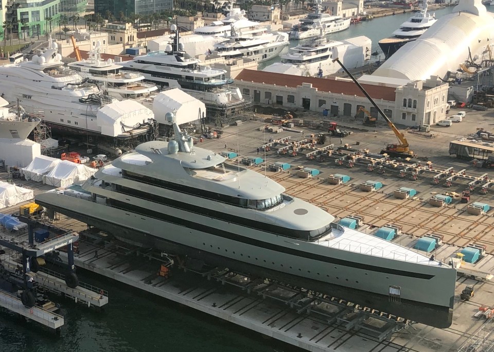 This ship … on dry land in Barcelona…… I think Linda, etc and I saw in Ft Lauderdale. The bow is unusual…. very distinct!
