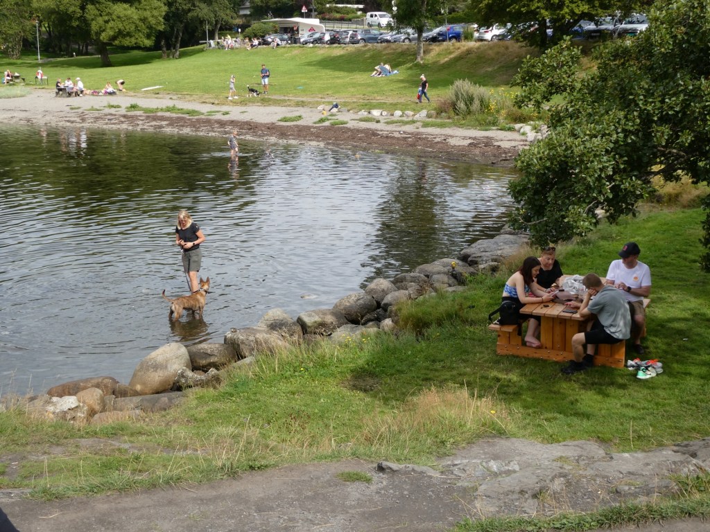 Hapsfjord where we stopped, people swimming. That’s where the 3 erect pillars were. When asked if the e-scooters that you see along on the sidewalks were free, our guide said nothing in Norway is free.