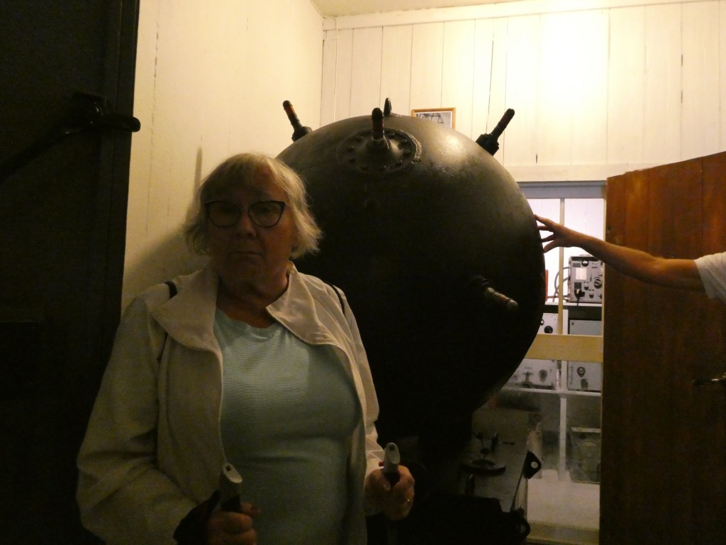 Next we go to the old cannon museum. These were built by the Germans. It is kept to show the children how bad war can be. The tracts that we see are used for munitions delivery. There were 4 cannons. The biggest was the 2nd largest in the world. It was built for the future ….was never shot at the enemy but was only used for practice. This cannon at Kristiansand had bullets that could travel 50+kms and another in Denmark that would travel the same distance. The area in between had mines suspended just below the surface of the water. This way they could control the marine traffic to and from the Baltic. Built by Germans, Danish and Norwegian contractors and Russian prisoners of war. They changed the paint colours for different seasons. The 330 ton gun only needs 2.5 minutes to do a full 360 degree turn. Norway was invaded by Germany from 1940 til 1944.