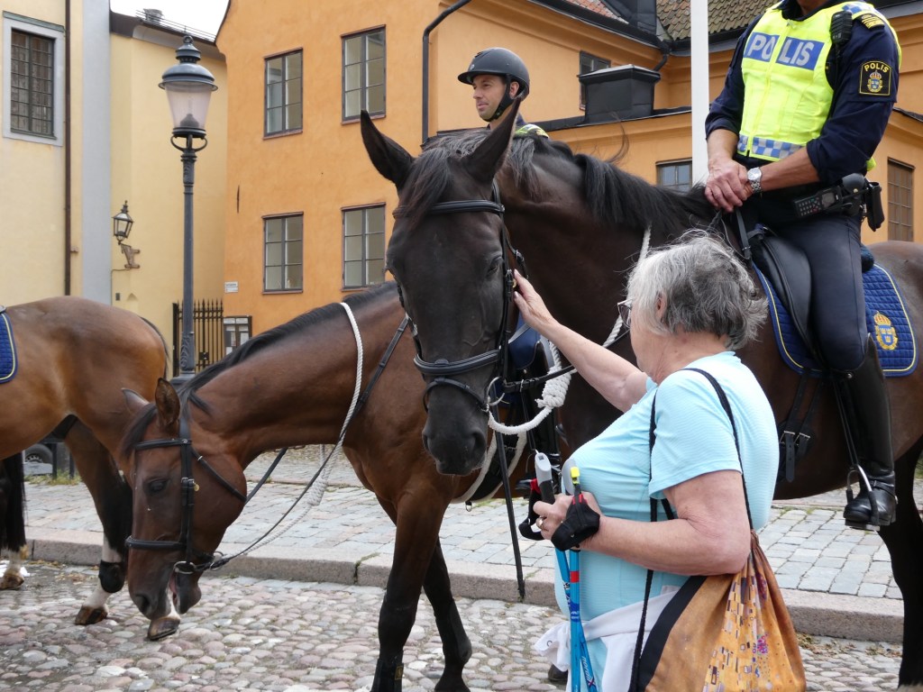 Leaving Stockholm the islands with little cabins dotted all along the route.Leaving Stockholm the islands with little cabins dotted all along the route.The markers are so close by as are the other big ship through a very narrow passage.Not sure if these ruins are called St. Olafs or St. Lars (1100AD) but were at the oldest “village/city” that was once the capital of Sweden….SigtunaRune found near the church ruins in SigtunaAt the information centre in SigtunaOld town SigtunaJeanette petting on of the police horses…near Royal Palace in Stockholm In the square near Royal Palace The Royal GuardsmenOld cannon in Old Town In old townOld town Stockholm Water well in old townThe royal city park (former hunting grounds of the royals during the Middle Ages)Stockholm streetMetal sculptures…old townSailing ship seen in the harbourOne of the ring of 5 sculptures The locked door to the toilet….in old townOld town city hall Sigtuna