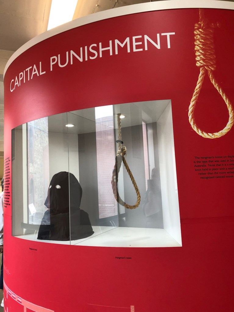 It’s a free day so we joined Lyna and Brianna, got a bus pass and went to visit the Adelaide Gaol…. No longer in service. 1841 to late 1980’s…. Housed approx. 300,000 prisoners over the years. It was also where they held executions….by hanging. 44 men and 1 female.