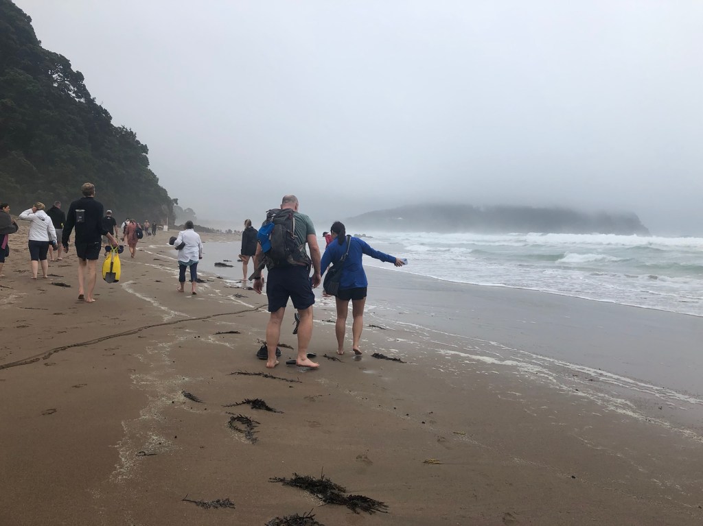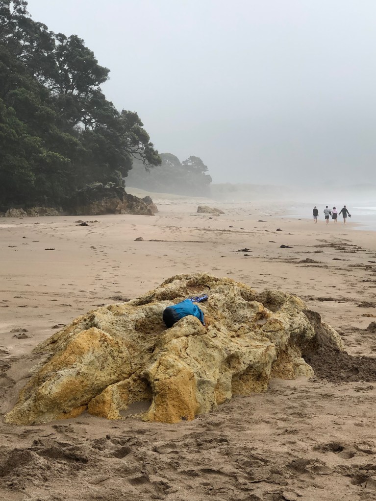 We are going down to the beach at Hot Water Beach to make “hot tubs” in the sand with shovels we got from our accommodations…. Accommodations that are one room huts cute and better than sleeping a tent but do not include bathrooms. You have to walk to a community washroom like when camping). We had so much fun. You have to search for spots that have hot water under the sand (geothermal). If we knew at the start how to recognize the spots (they had bubbles coming to the surface like when you are searching for clams in the sand). Some spots were so hot it seriously was scalding my feet. Everyone including others not from our group would sit in these nice warm pools only to have a big wave come crashing in and taking out the walls.