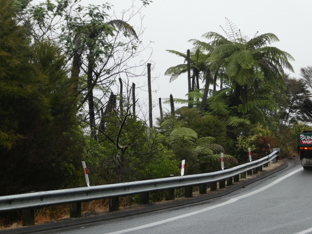 Driving into an area of beautiful hills with native trees and ferns and introduced trees (that because of the ideal growing conditions, matures in 15-20 years. In other countries takes hundreds of years). Now they are trying to get the native to be reintroduced to the areas that has had the non-native trees.