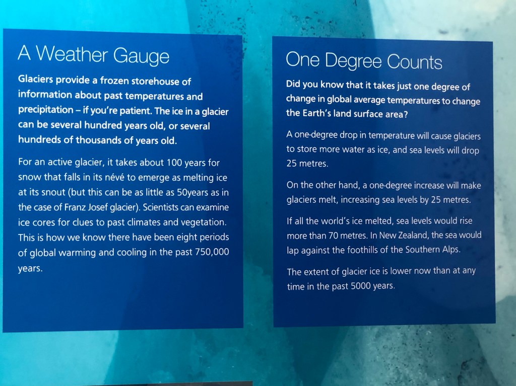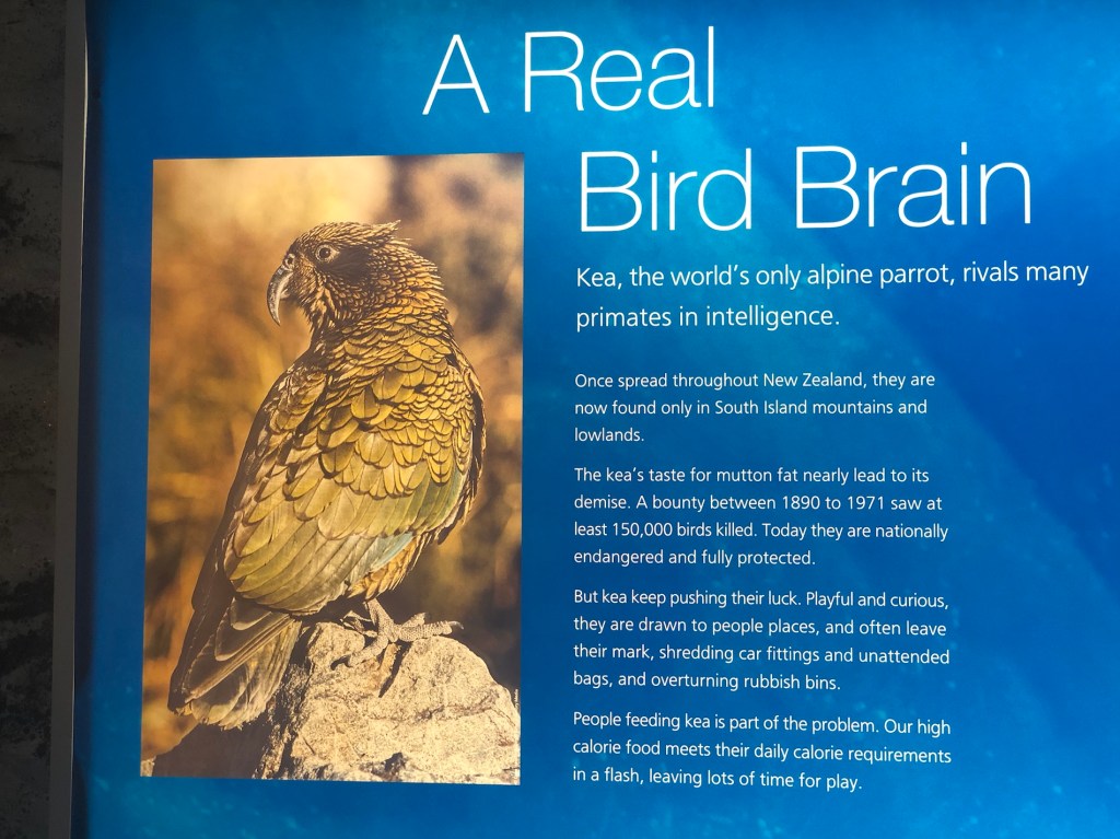 I walked over the “Franz Josef West Coast Wildlife Centre”. I saw a couple of 10 month old baby kiwis. We’re not allowed to take photos so sorry folks. Learned about the rarest of them, the rowi…. How so few of them in the wild survive attacks by dogs, rat, but mostly stoats that look like mink. Apparently a concerted effort is being made to capture and eradicate the stoats and other predators. I also read about glaciers and other animals some, like the Himalayan Tahr that have been introduced from other countries and are now becoming a problem.