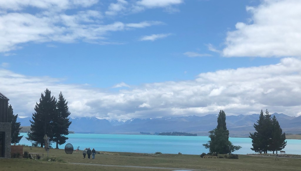 Lake Tekapo…gorgeous glacial waters that only shows when the sun shines. Lucky us!!! The night skies here are the darkest skies in the world. There is huge telescope near here ….. apparently caught 2 exploding stars that happened 11 billion years ago.