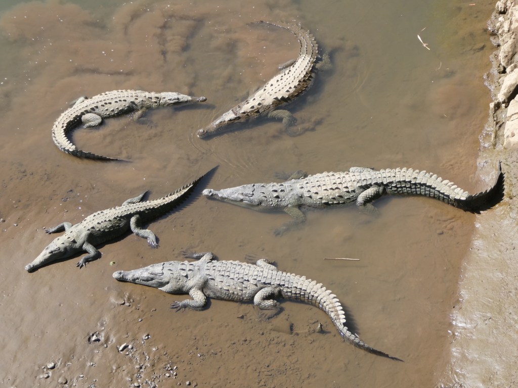 Stopped for breaky then off to see the crocodiles. American crocs will grow up to 6 metres in length. Sometimes people die when swimmers and surfers go to where they have been warned not to go. We stopped to see the huge crocs in the river from the bridge over the River Tarcoles.