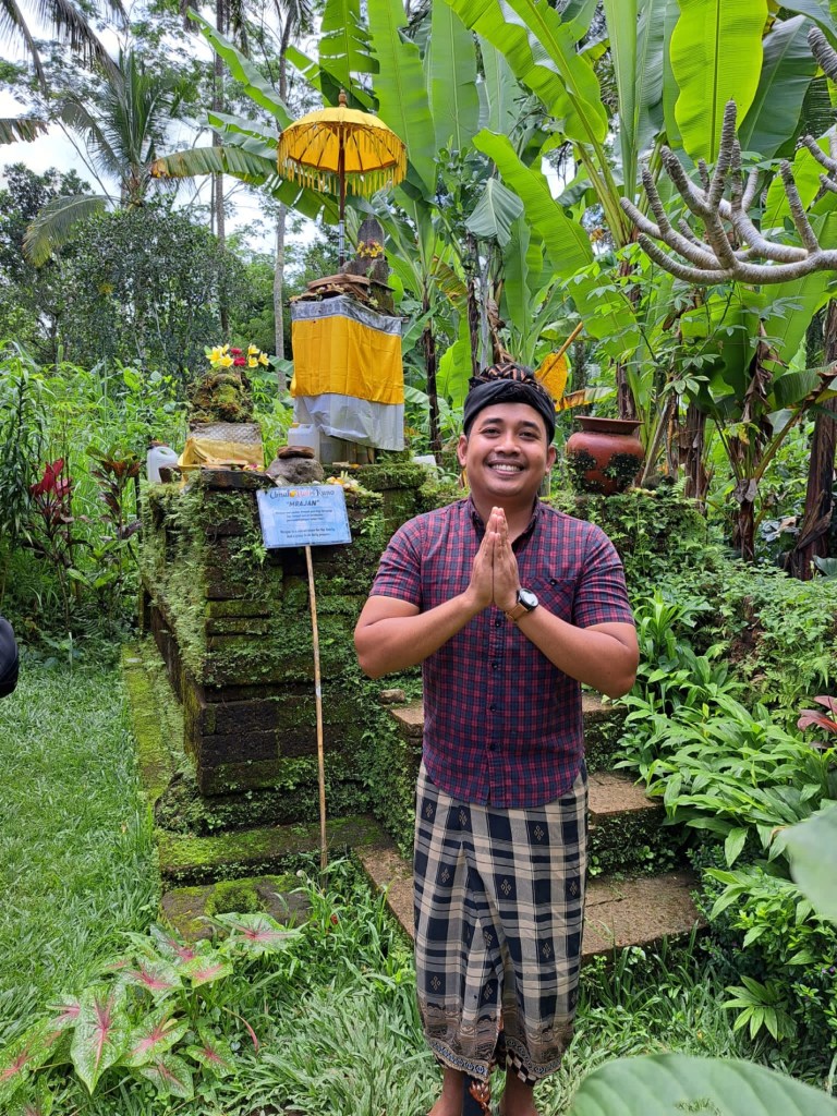 4 elements in daily offerings. Offering for food before eating. Balinese never cry when someone dies cuz they are brought up from a child that we are all going to better place. They explained the procedure but besides cremation I am not going to get into but it involves the 4 elements…earth, water, wind and fire