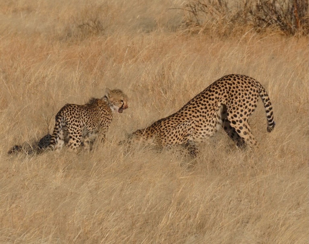 Sept. 4/23 pictures of momma cheetah and cubs’ kill in Samburu NP Leave a reply I don’t think I sent these….. sorry if I already did! Evidence of the feast 4 cubs and 1 mom Cheetah…. the hunt and feast of a dikdik-Samburu NP Share this: Click to share on Facebook (Opens in new window) Facebook Click to print (Opens in new window) Print Like Loading...