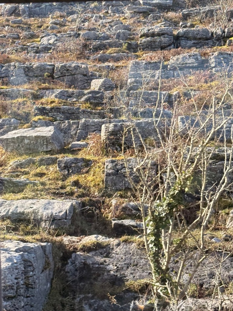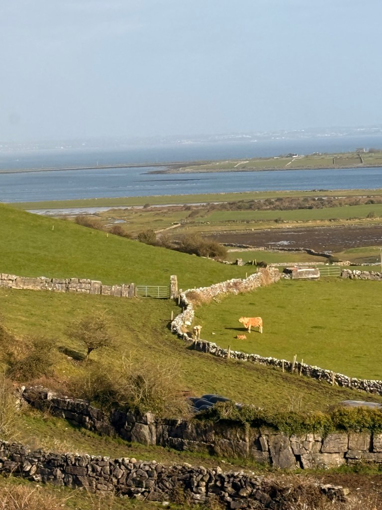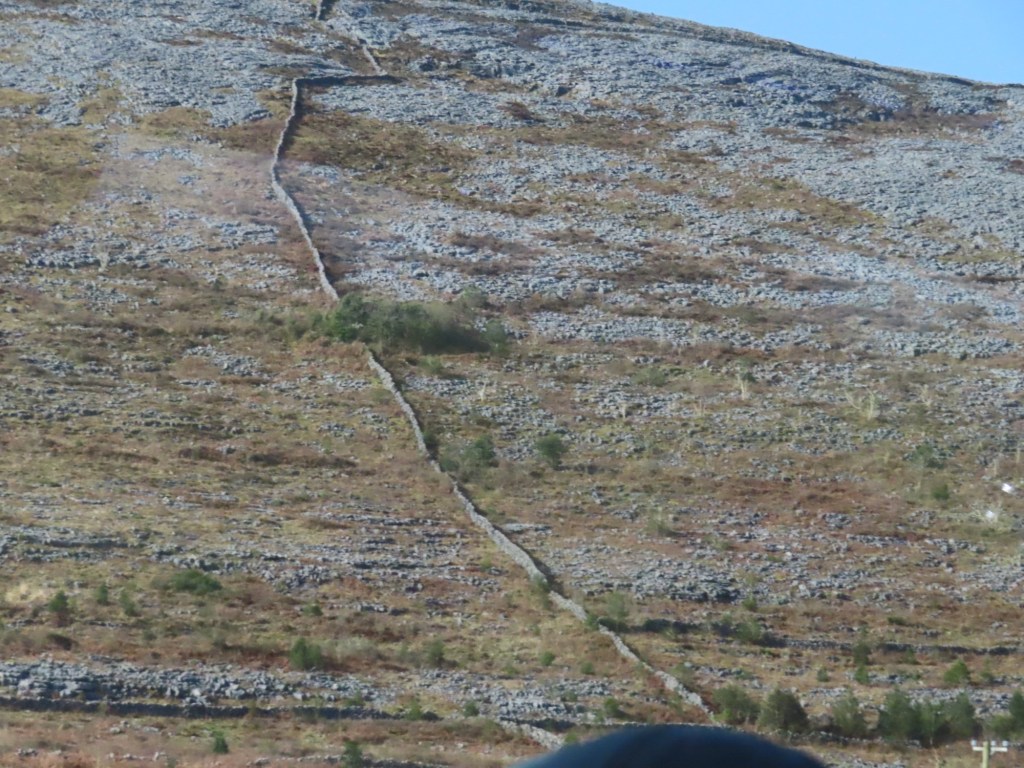 Aillwee Caves in the Burren area ….this is a limestone area… there is not much soil. The hills are covered in rock hence all the rock walls just to get rid of the rocks. One can imagine Tolkien’s stories and characters just by looking at the hills. Lots of flowers grow among the rocks in the area cultivating perfumeries. This area was the most devistated by the famine. There was a 35% death rate during famine never mind the ones that emigrated. During this time, the starving people of the area, in order to get a hangout from the government had to “work for the money” by building F”famine walls….. straight up the hillsides (when they were in a severely rough position).
