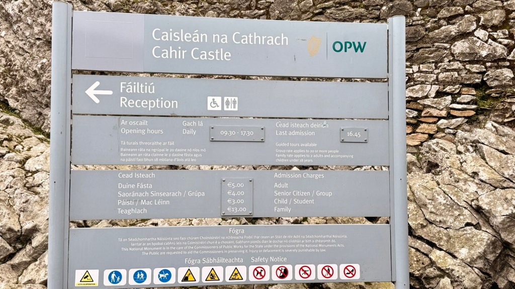 Cahir Castle-1172 AD, has 3 courtyards. The proper name for the castle (I am not even going to try to say it) means …“old stone fort of the fishery”. 800 plus yrs old is from medieval times.