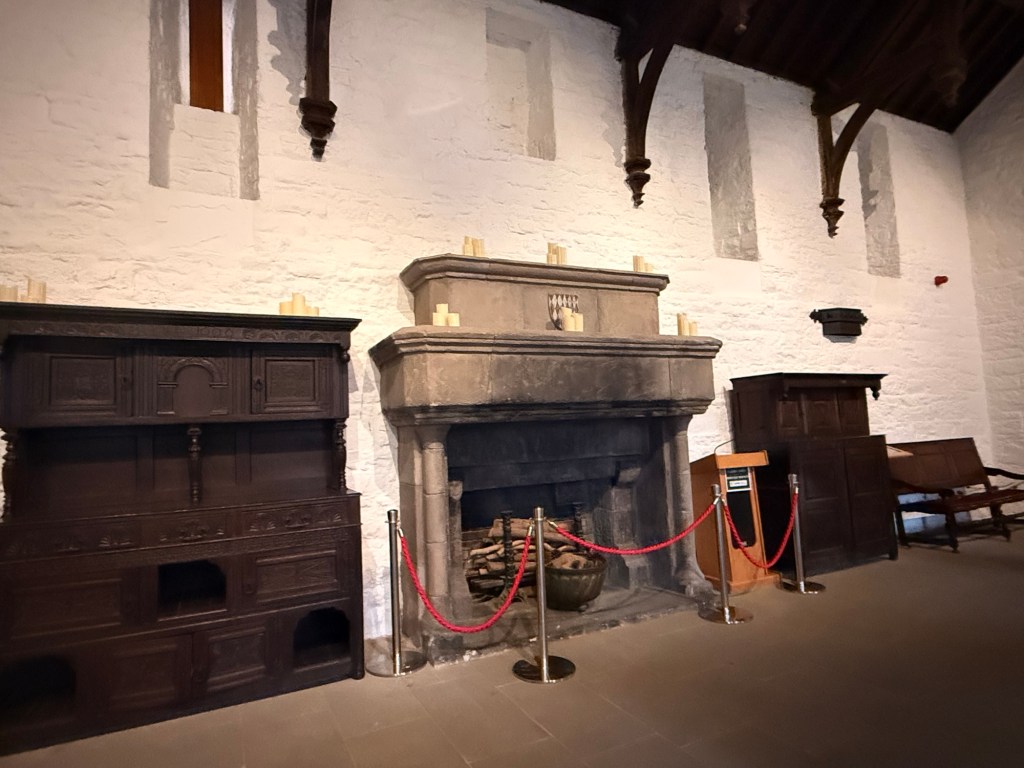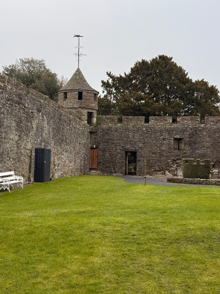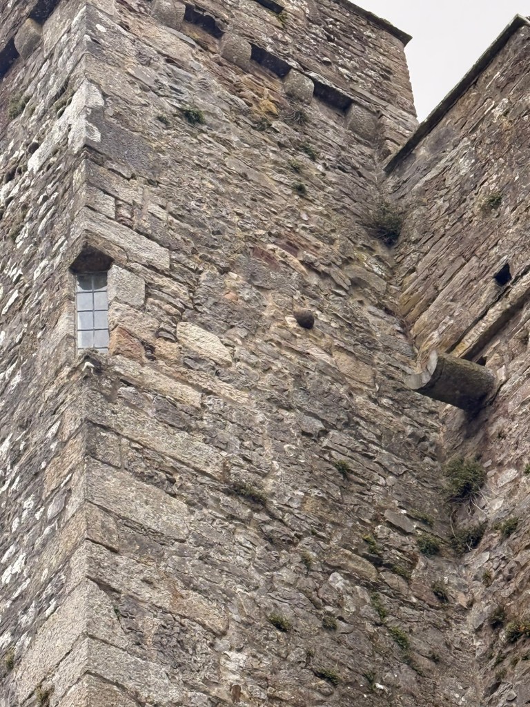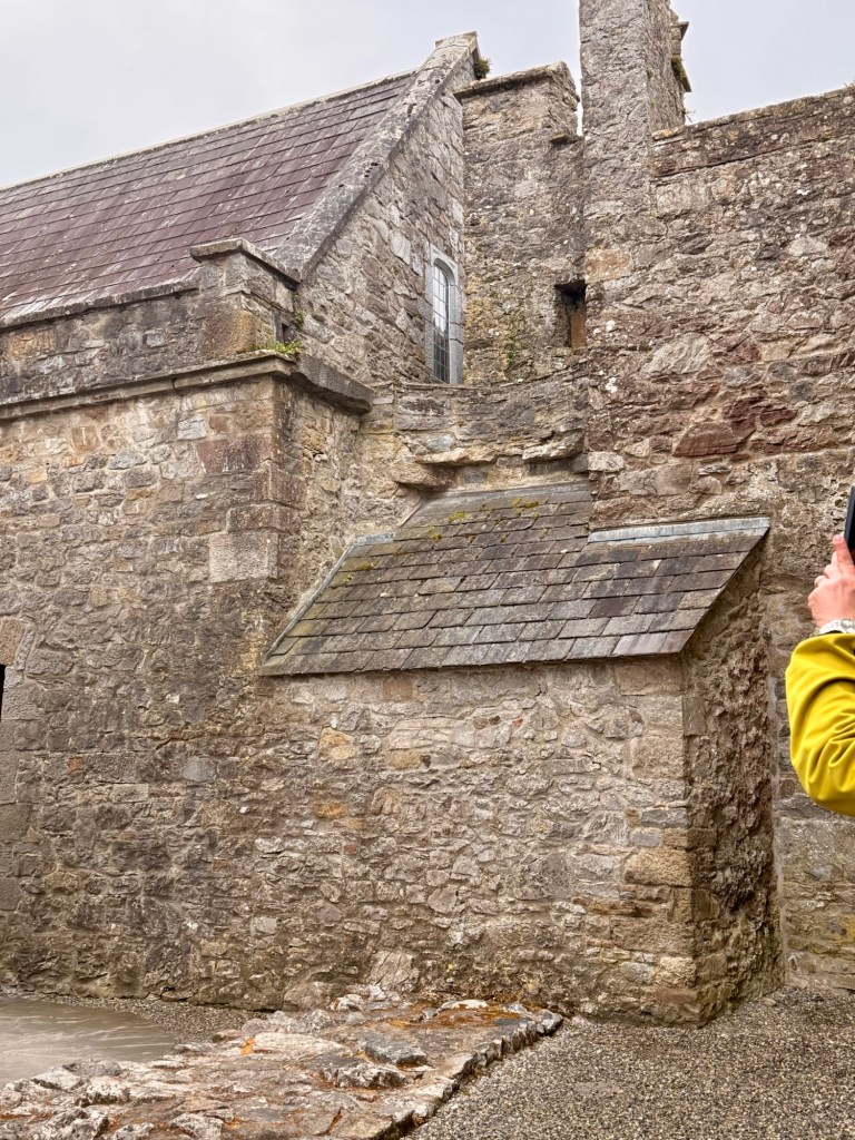 Round tower was the prison tower. In 1599, a cannonball is stuck in wall when the British lead by the Earl of Essex attacked the castle…. It was the only really successful attack. The family were allowed to back in but after 2 other attacks, one in 1650 when Oliver Cromwell attacked they surrendered and they never moved back in .