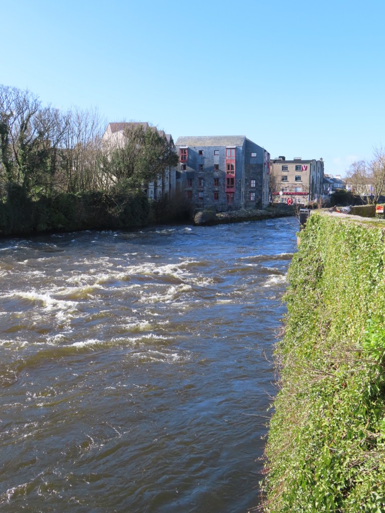 Galway…. Is a university city. We walked over the “raging” River Corrib on a pedestrian bridge, then walked alongside to the harbour. There is the lovely old pedestrian street “Shop Street”with shops and pubs, of course….. and Lynch’s Castle from the 15/16th century. Then back across to the cathedral. Along the way were a bunch of teens from a private school celebrating a pre-grad…. all dressed up but some were “pissed to the gills”. They did not impress our guide.