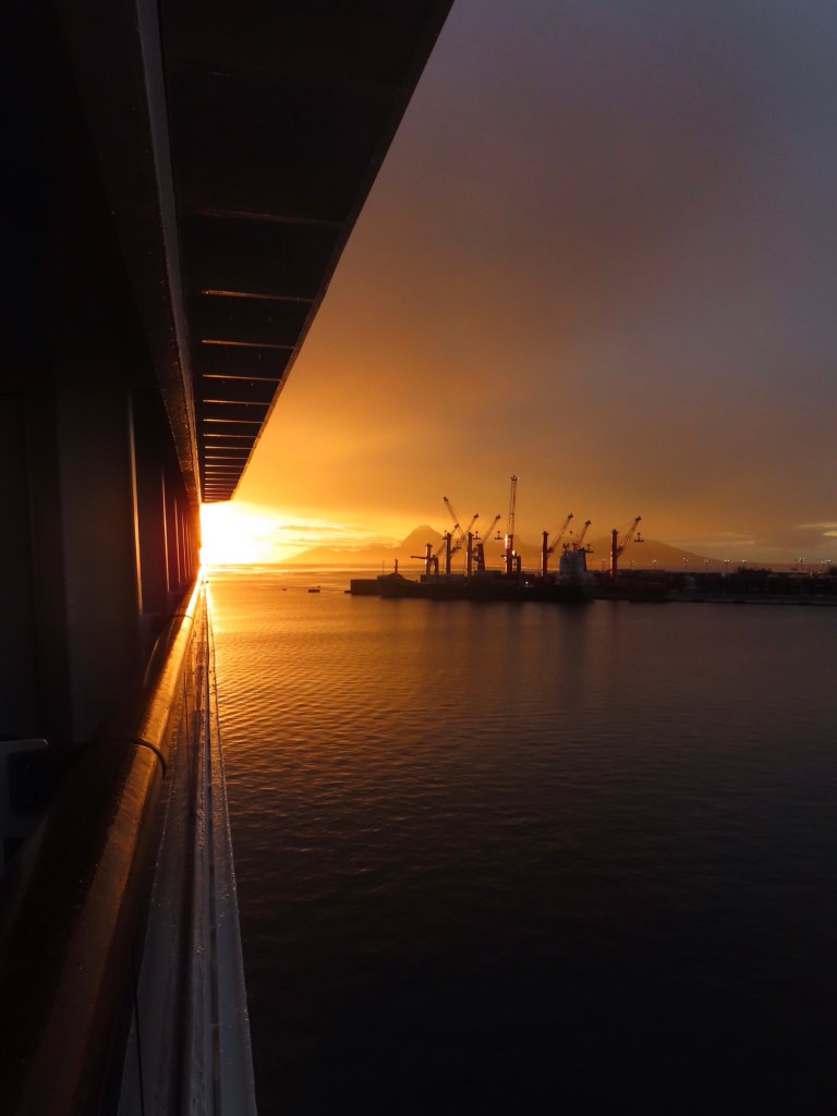 I didn’t do much the first day, just went into the market and had dinner on the aft pool deck watching the sun go down. Every other evening dinner held on. The aft pool deck when the ship overnighted in port, it poured rain. Not this night!