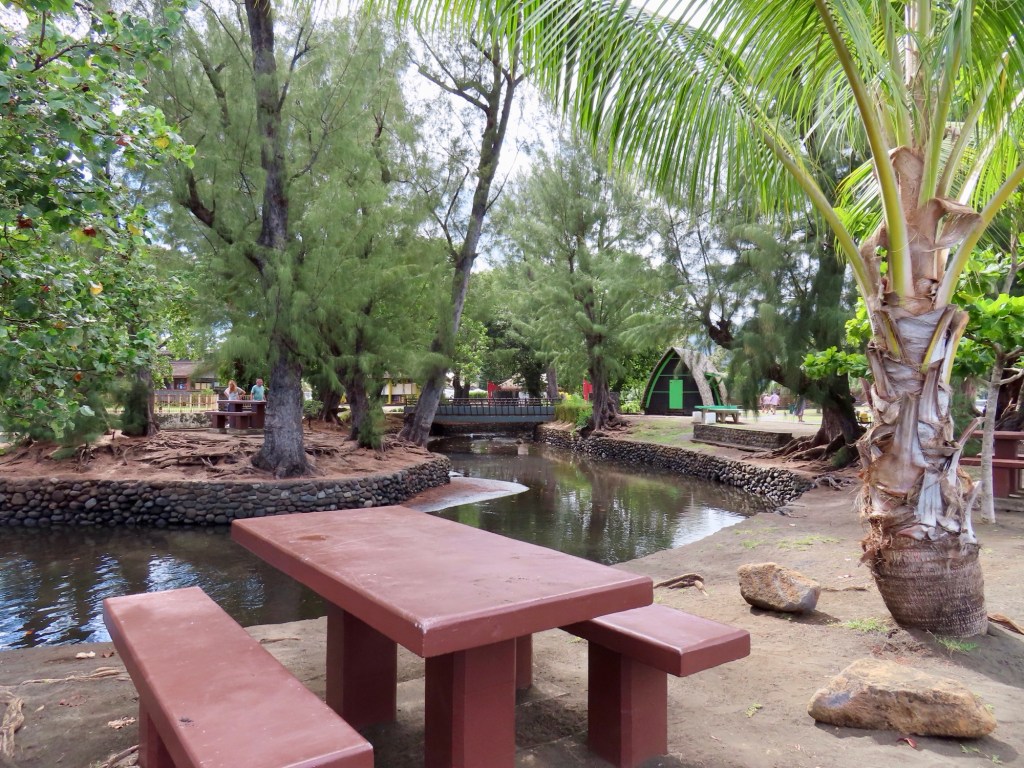 Western shore, Place Vai’ete, is a park in the port. There are food trucks.