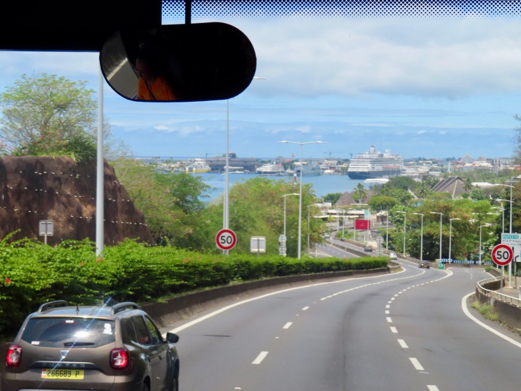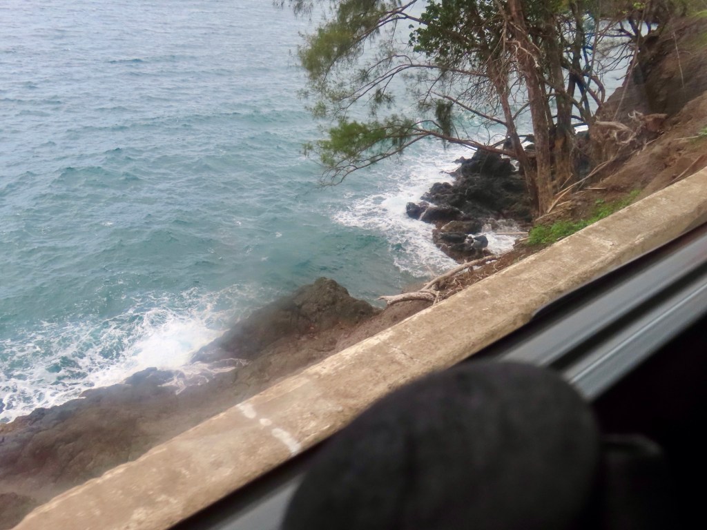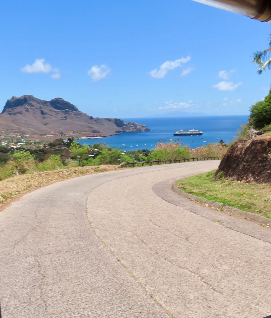I thought it was to be cooler with less humidity but well what can I say but OMG…not!  And it did not rain though.  It actually looks like the port area is quite arid but up in the hills/mountains it is a jungle.  I did take a 3 hours drive around part of the island.  It is amazingly rugged with windy cement roads with hairpin turns.  Gorgeous!