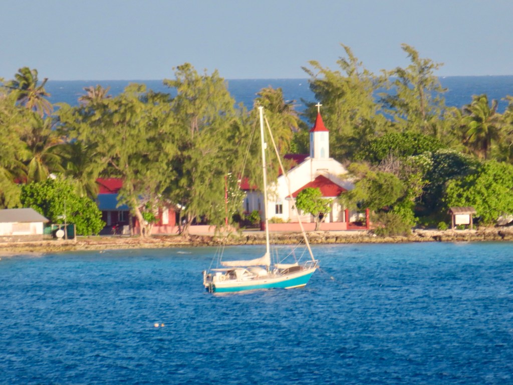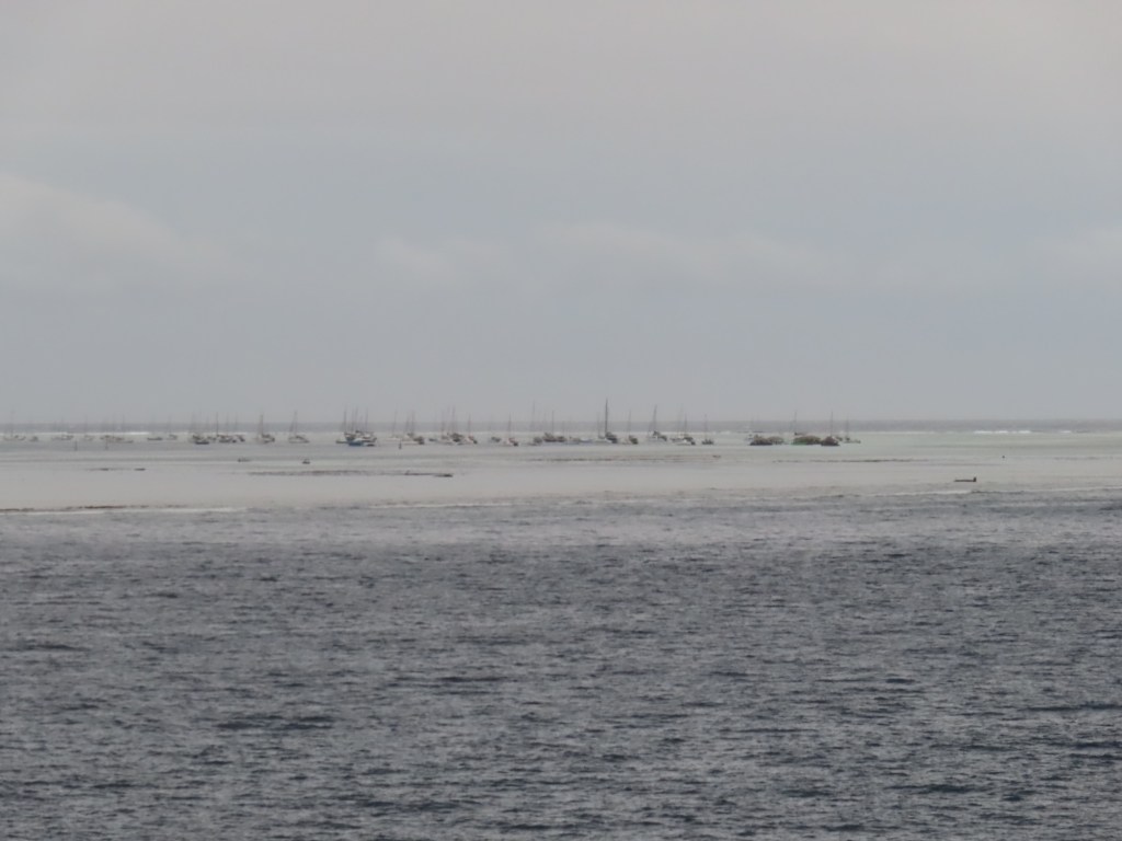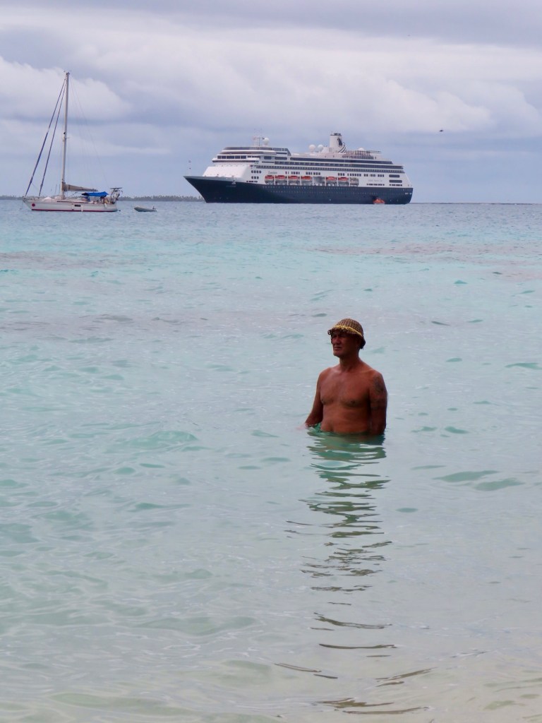 It’s amazing that we are anchored inside the lagoon….so large an area that you can barely see the little “motus” around the outside.  And as I said, it was a rough ride going and coming.