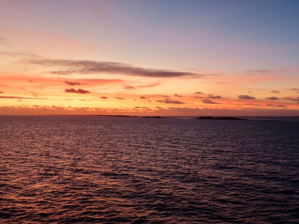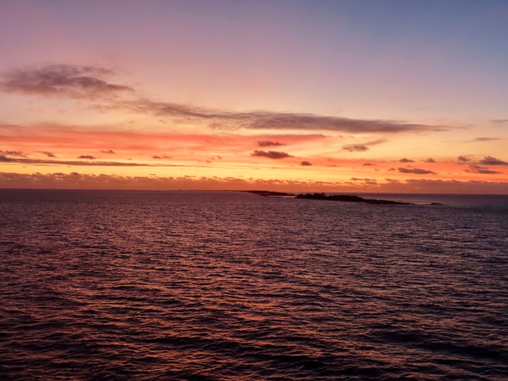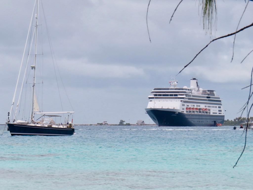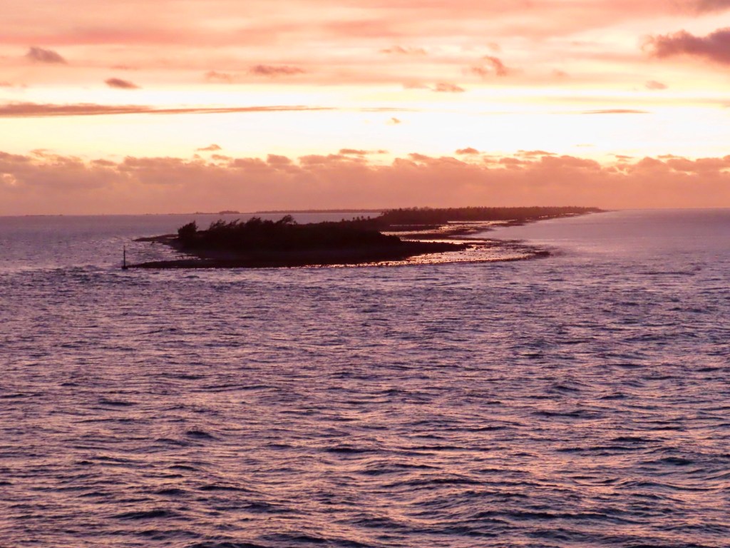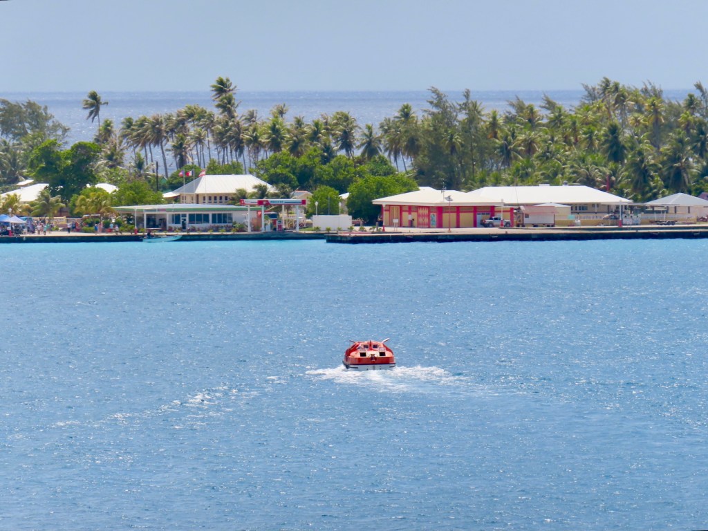 From the port chat from eve before:-Atoll 37 kms long ….tendering is a 6 minute ride 8-4:30..29 C…scattered showers, 40% chance, 77% humidity