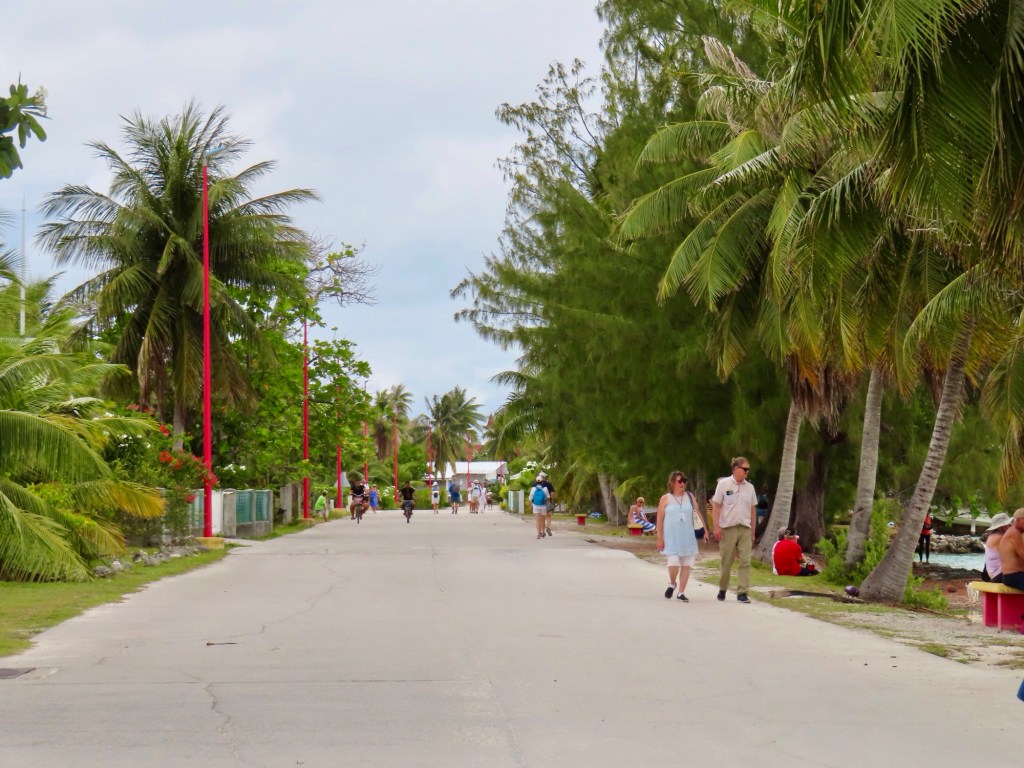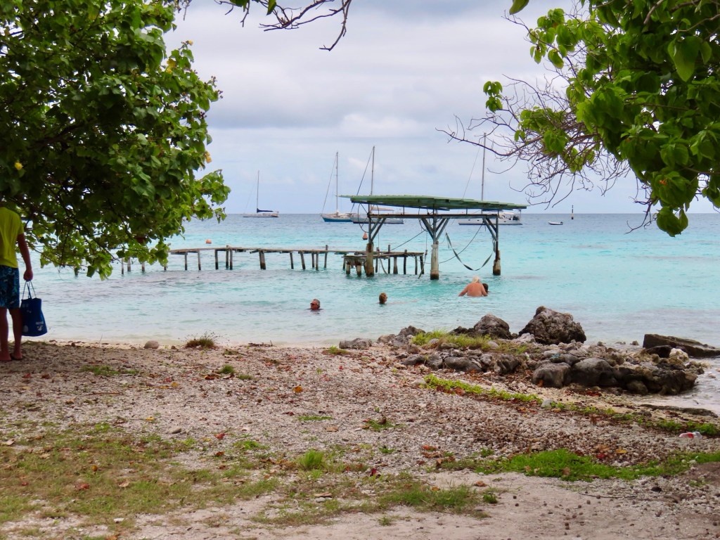 Just took the tender.  It was very choppy. Because of winds and waves going in wrong direction, we have to leave the ship by the aft port tender dock.  We walked along the road (cement for the most part) to beaches that ran along the inside of the lagoon.  Outside or other side from when we landed, is exposed to the ocean and so is harsh. There is no swimming.  At one point there was a local guy in the water feeding sharks….a nurse shark….brought it right onto the shore.  I missed it but some people were quite freaked out by it.