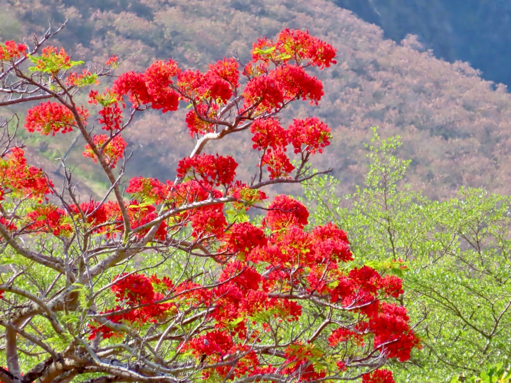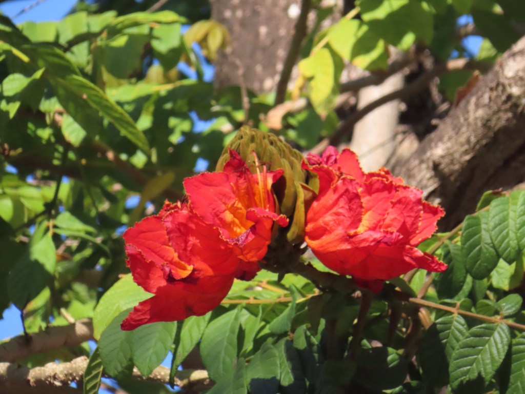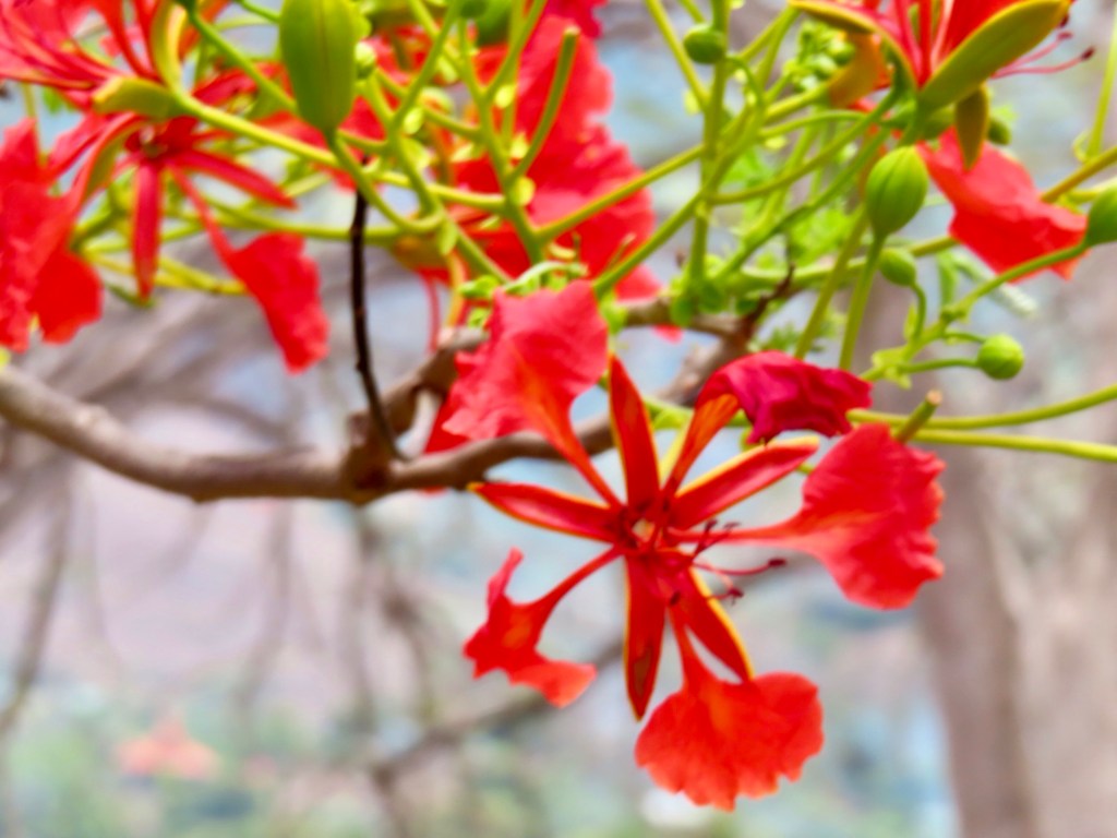 Poinciania, AKA flame or flamboyant tree are the red Christmas flowered trees. There are also yellow ones but you don’t see many.