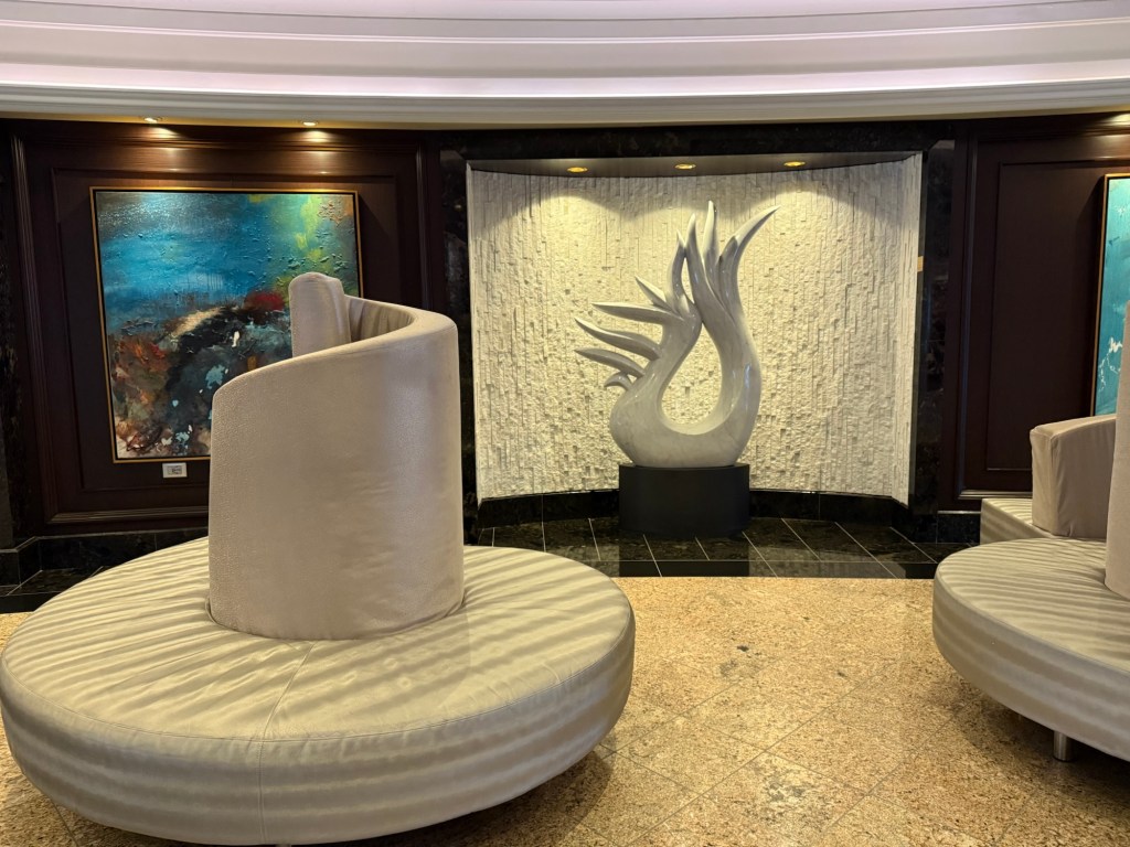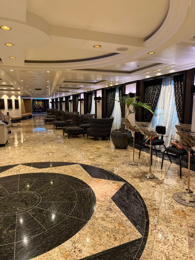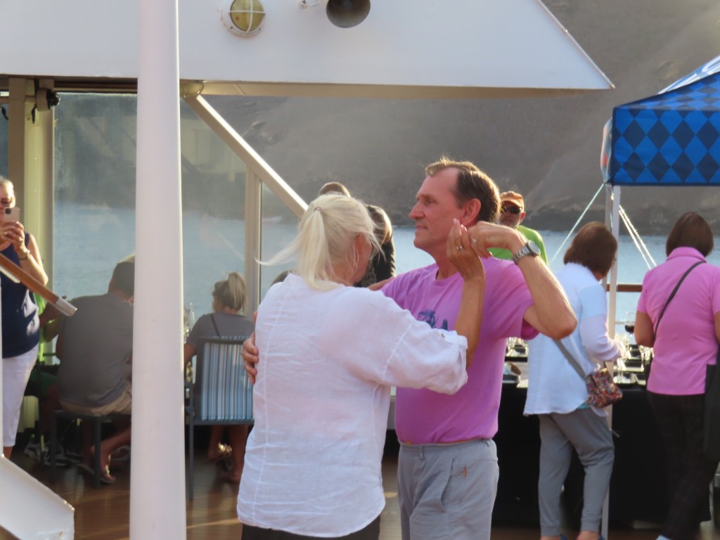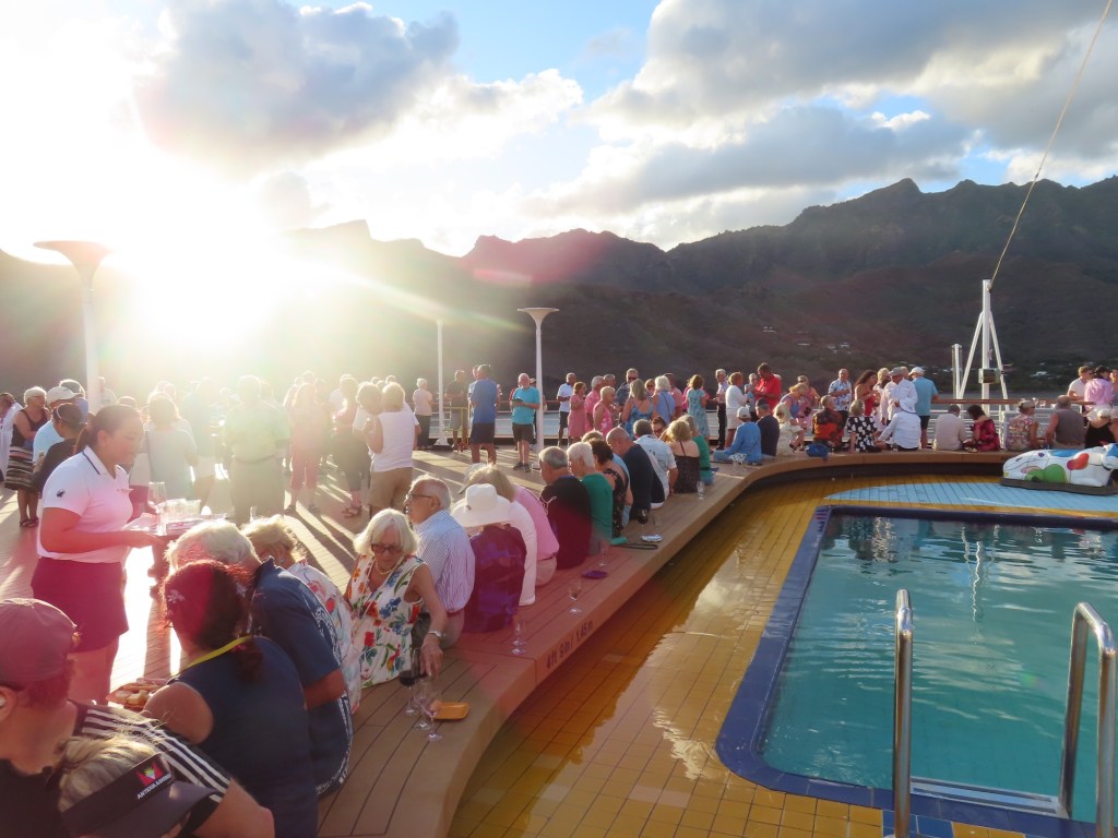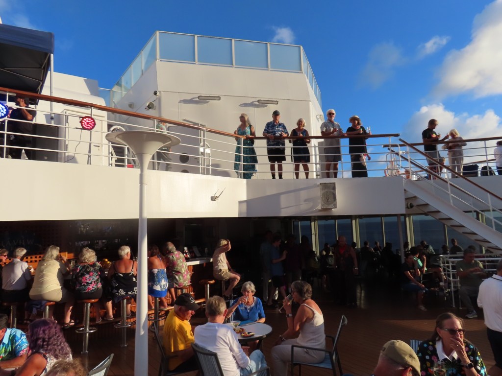 Yesterday as well, we were treated to the band and singing talents of the crew. One couple from guest services were particularly good. They sang the Andre Bocelli number “Time to say goodbye”. It produced quite a number of tears from the audience., myself included. They are missing their calling.