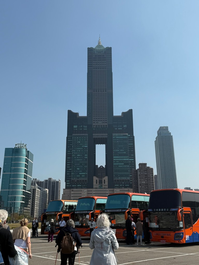 Temperature is supposed to be 19C so not too bad. It is a lovely sunny day with no clouds. We arrived in the port for Taipei….. Keelung. Our tour guide is called “Rita”…. She lived for 30 years in US. We all have to wear seatbelts. She explains we have several hammers on board the bus  if needed to break the windows to escape (in case of an accident)and where exits are. I have never had that drill on a bus before.