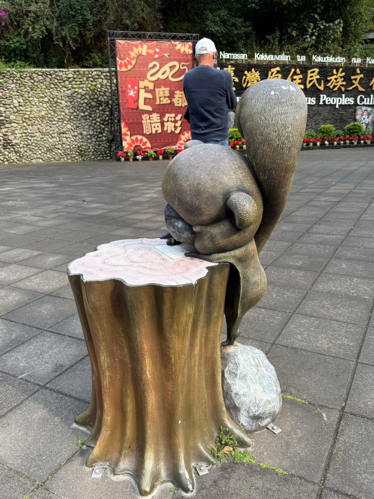 85% of the time it is wet in Keelung so there is a steel representation of a microphone on side of road to suggest on your way home that you sing to make you happy….lol!