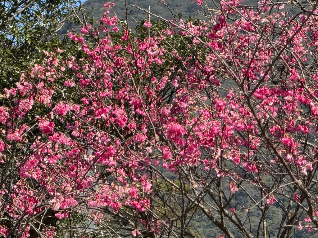 Stopped for a pit stop in mountains … cherry blossoms and rose azaleas. When she was a teenager Rita had to have military training here for 2 weeks in preparation in case China attacked.