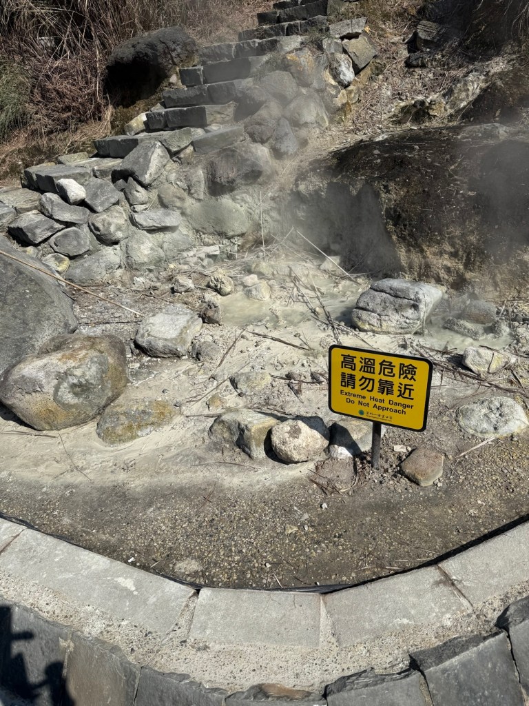 On to where the heat and sulphuric gases escape the mountain. It is called the grasses area because they used to burn all the bamboo and other grasses so to not permit people to mine the sulphur for the making of firearms to possibly overthrow the government.