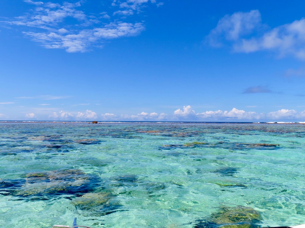 The reef is only 1-2 metre deep. Intercontinental hotel closed since Covid. We passed where you park your car then catch boat to private island to lunch and feed the rays, sharks and turtles.