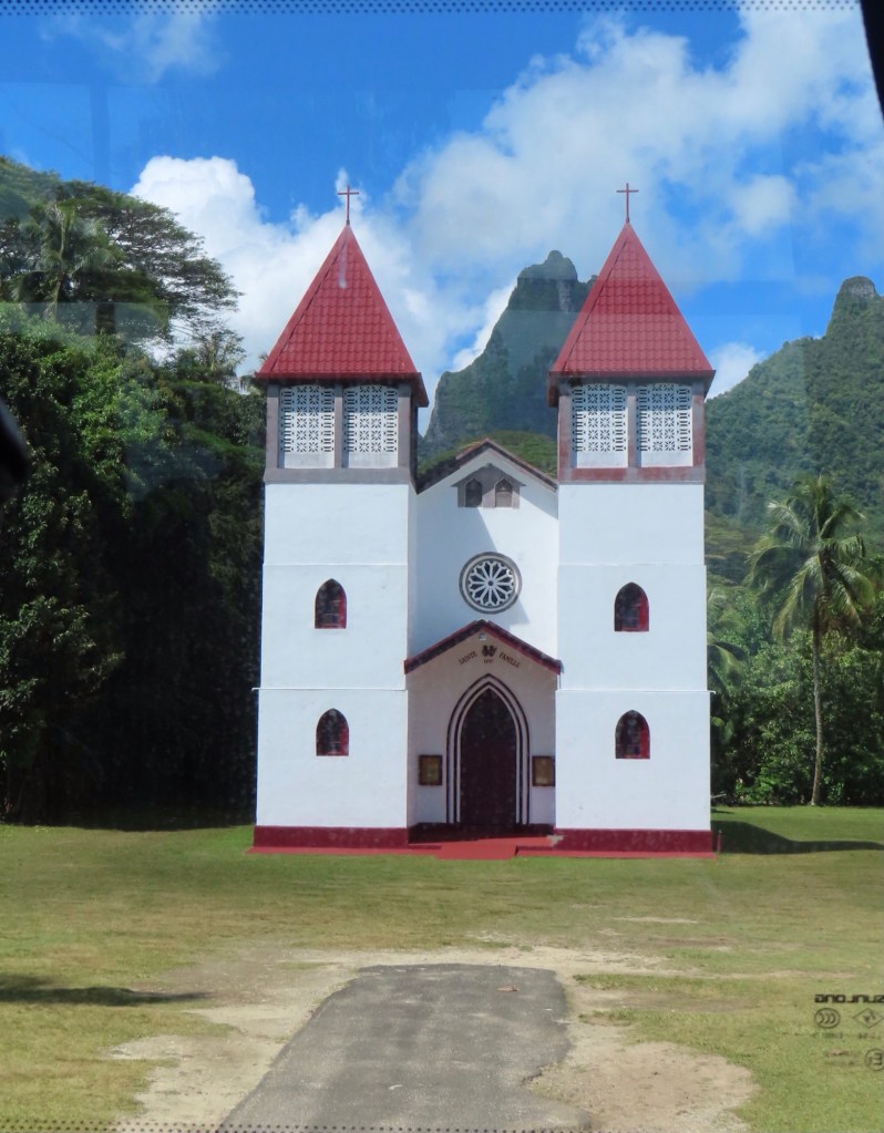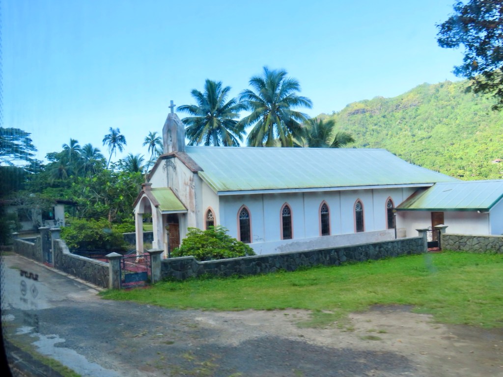 In 1700s Christians came to Mo’orea. The octagon church in the port was the first Christian church. Locals had worshipped three gods previously. When they decided to have no more wine in ceremonies at the octagon church, the locals built their own church elsewhere. There are lots of churches on the island.