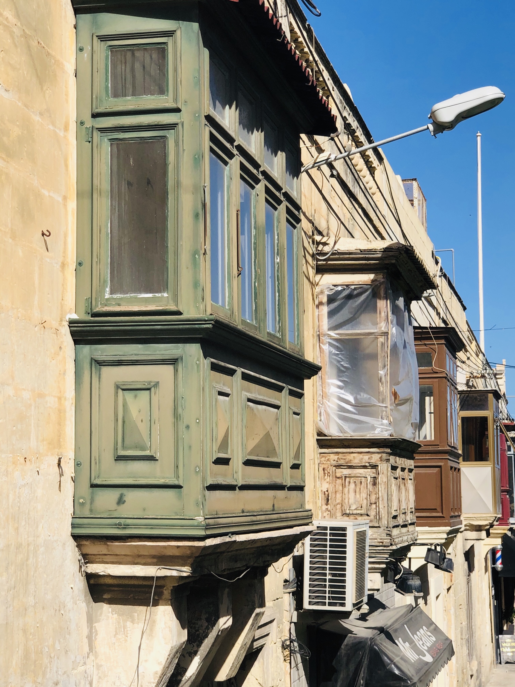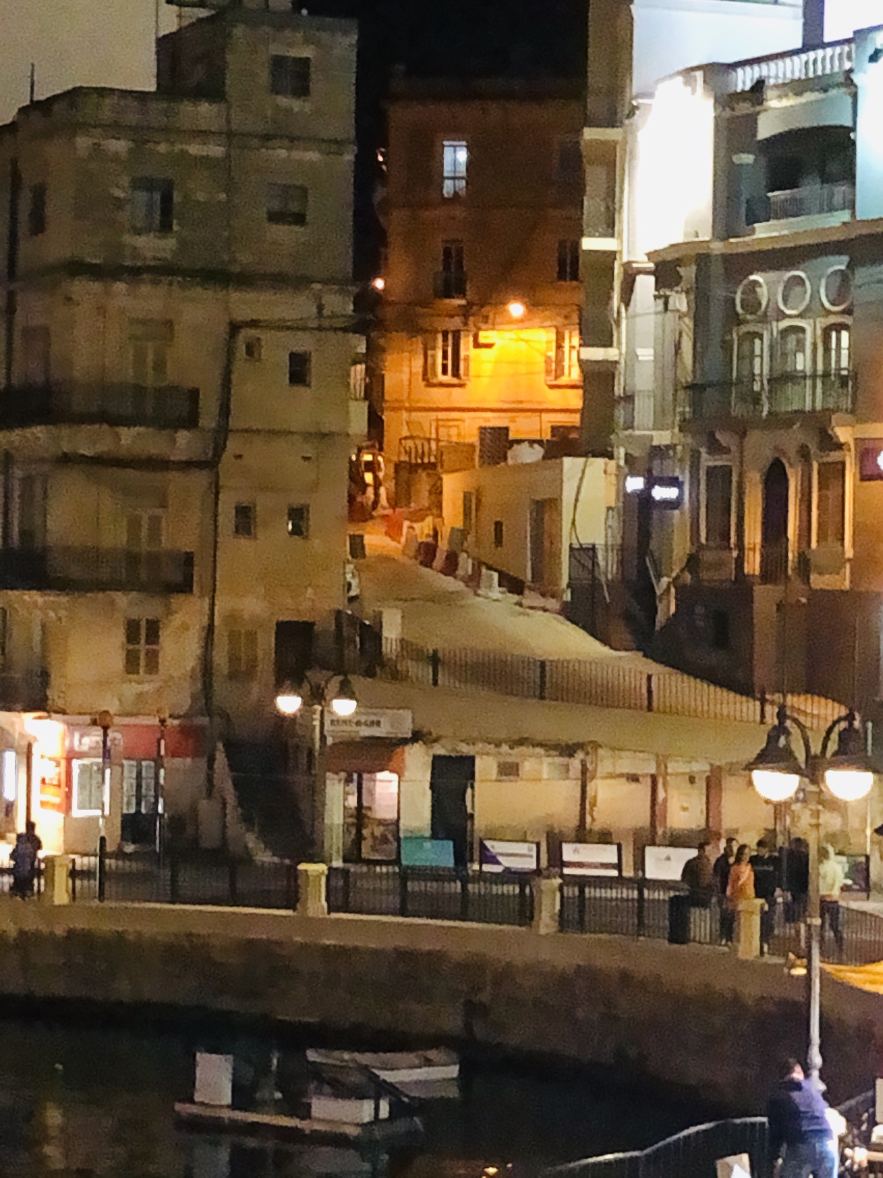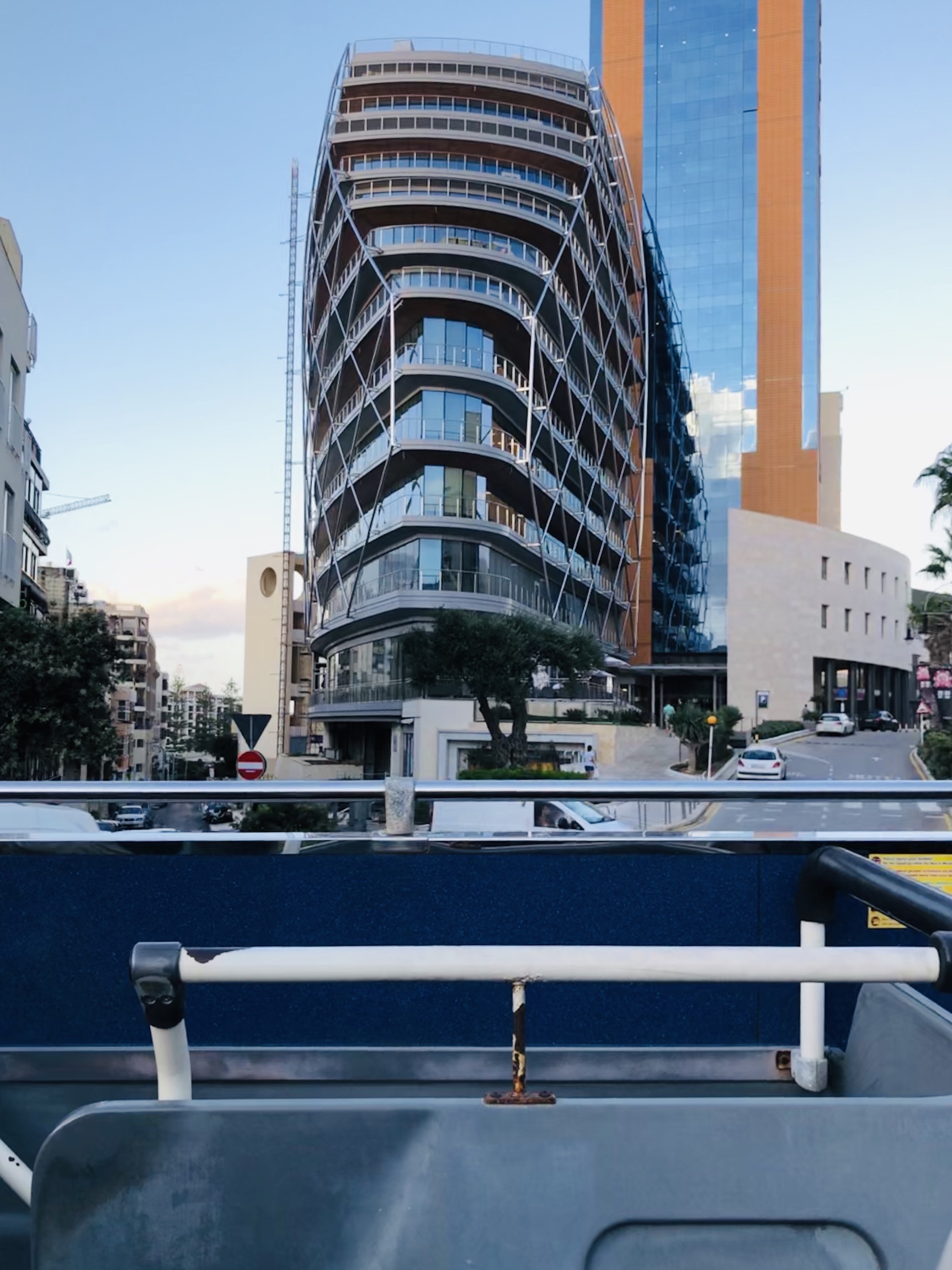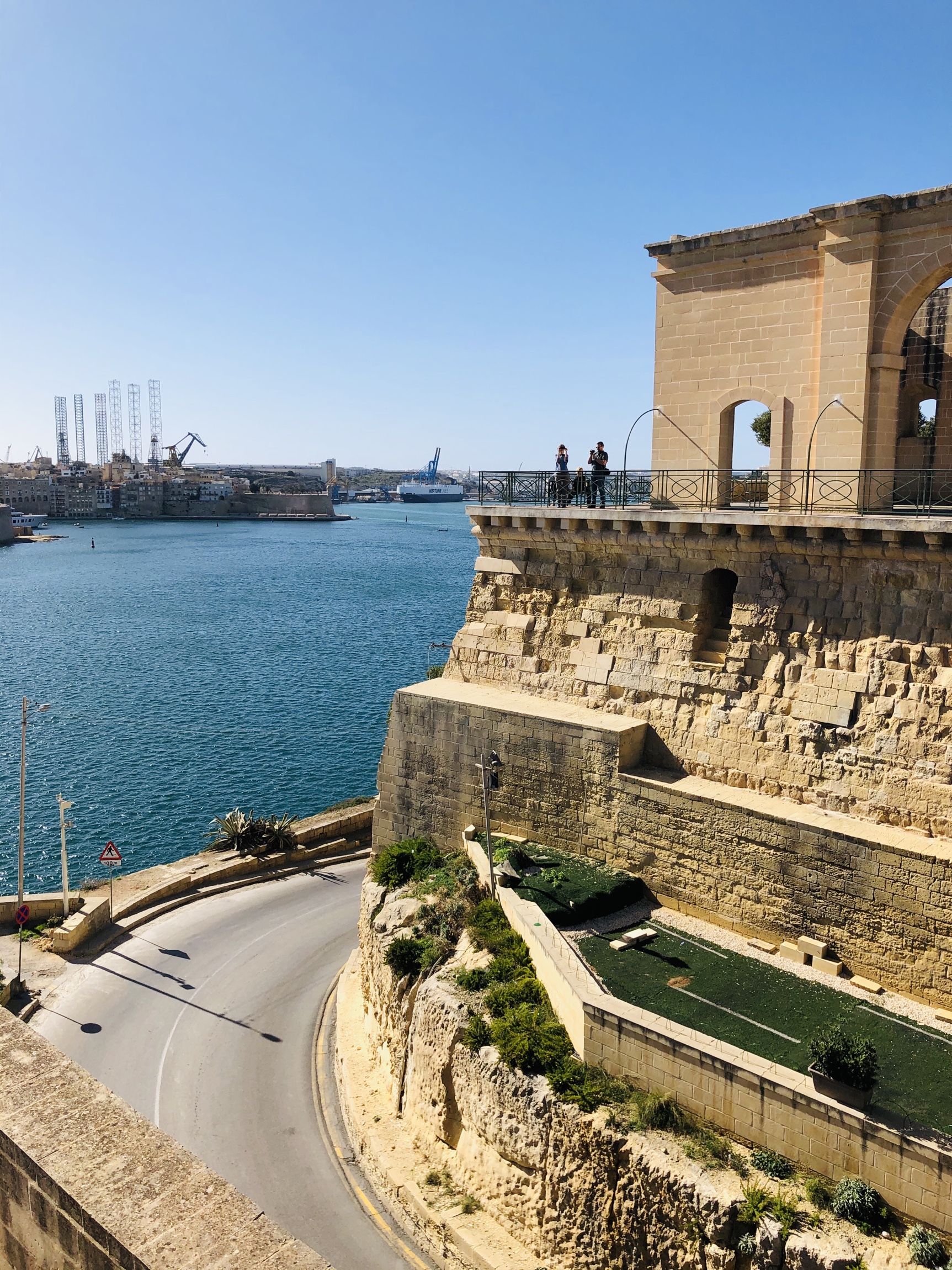 We got a taxi from the airport to our hotel …the Juliani Boutique Hotel on St. Julian’s Bay. Interesting thing….the taxi is not metered but you are charged a flat rate to the specific areas you are travelling to….and collected at the place of origin. Unfortunately the driver took us to the wrong hotel and we ended up walking and dragging our suitcases along the very narrow ( unlike Barcelona’s) to the correct one. The hotel was very lovely with a rooftop pool and deck that overlooks the bay…..nice! From the rooftop, Ron counted 30 hammerhead cranes…..amazing!