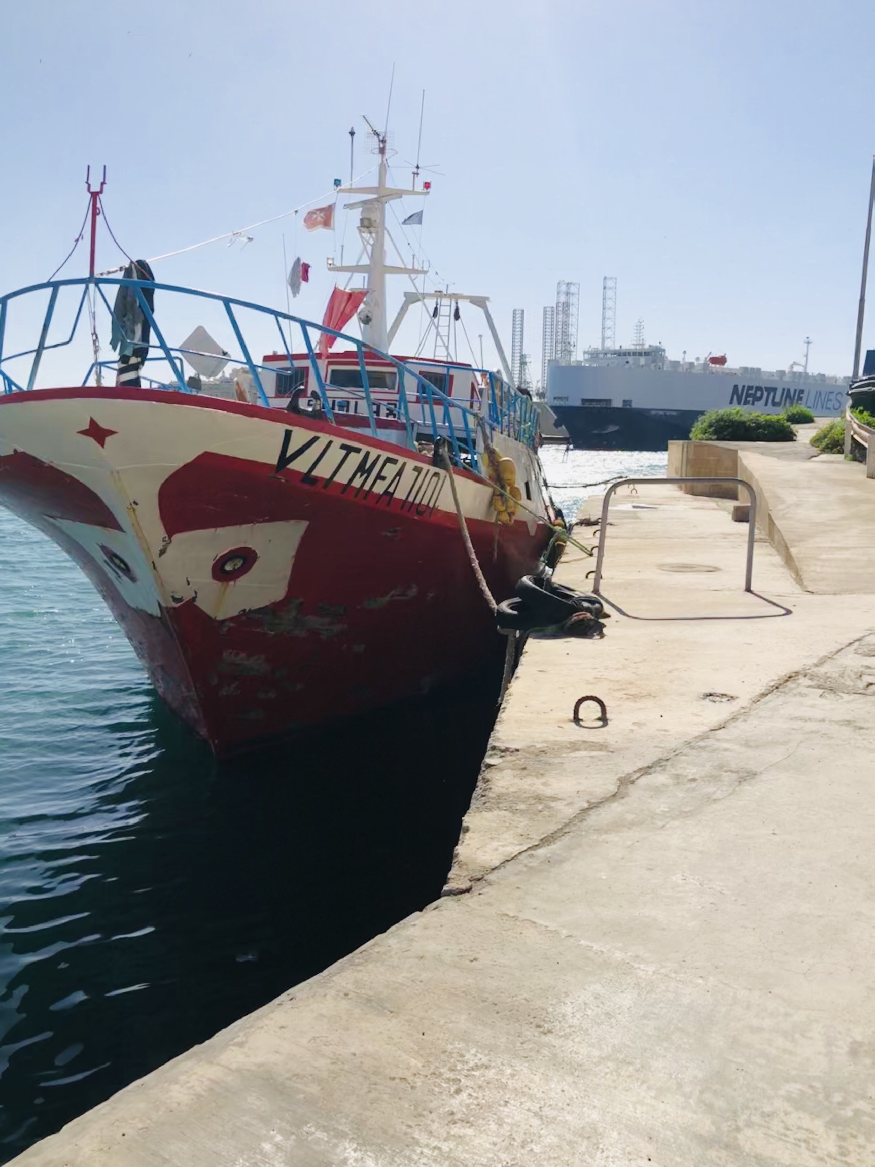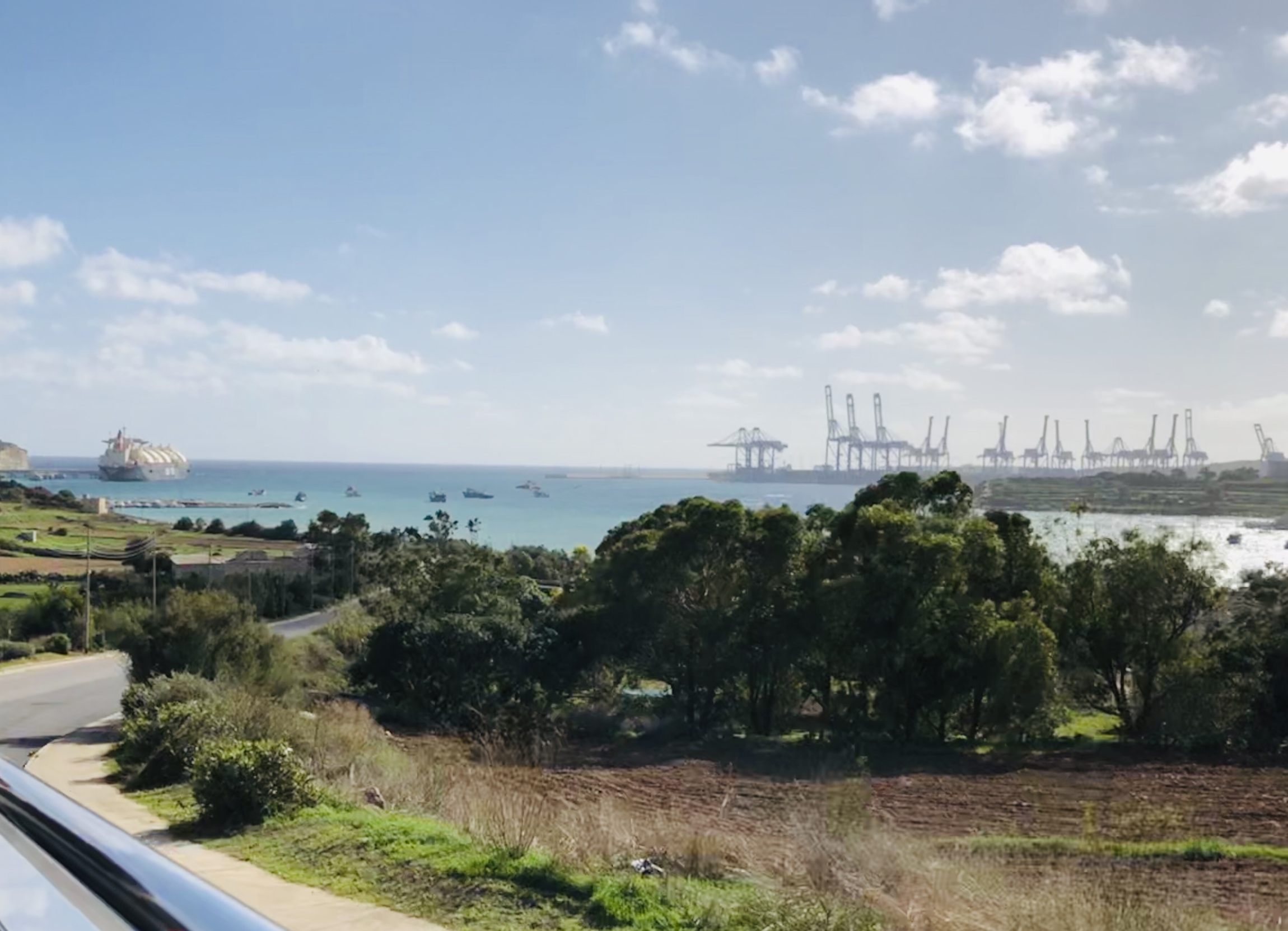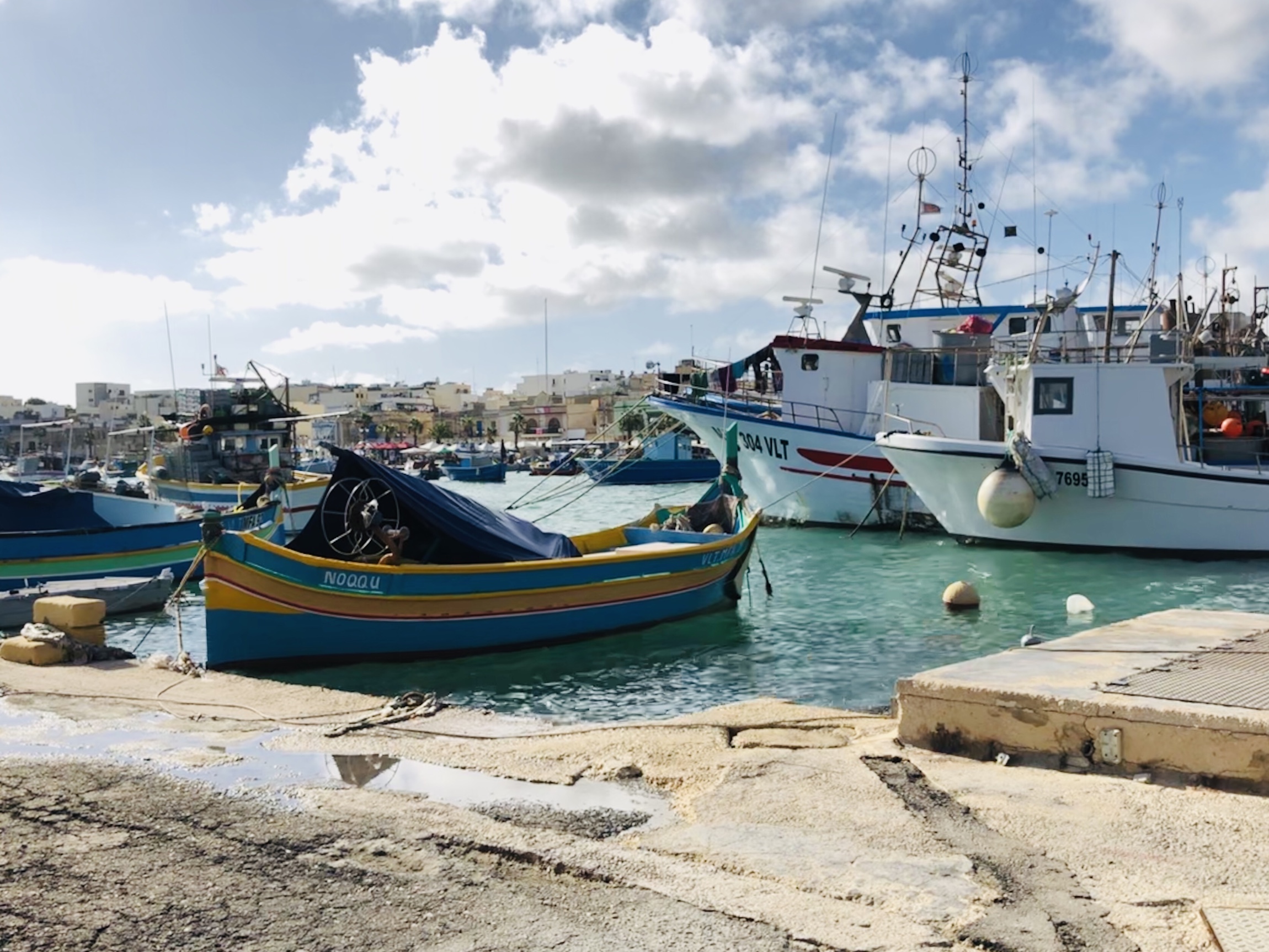 Marsaxlokk is the lovely fishing village with bakery sweets and other tourist trinket markets….. is also a LNG and other container port.