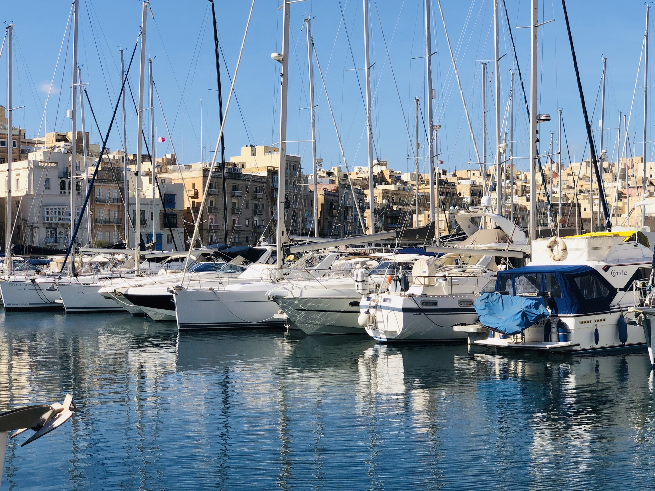 We got off the bus at one of the fingers of this incredible harbour, where you can see oh so many sail boats and huge luxurious ocean going yachts and Ft. Angelo…. a fort that has survived sieges by the Ottoman Empire in 1565 and the other the Axis command in 1944.