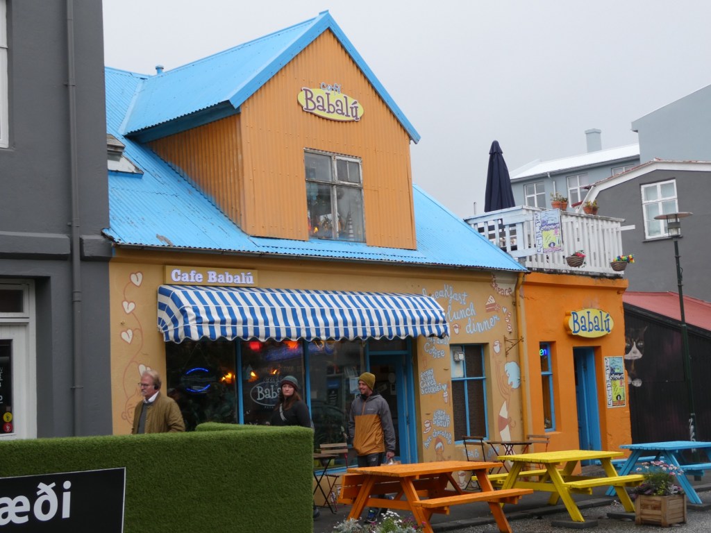 We found the recommended restaurant called the “Loki Cafe”. How appropriate! it was not what you would call a luxury upper-end fine dining establishment. I had lamb shank in a sauce with little new potatoes and root vegetables…..yum! Jeanette on the other hand was more adventuresome and went with the really tradition, mushy fish on black rye bread, dried cod that you dip in butter, smoked raw trout on rye, very thin lamb (smoked), etc., marinated shark and some kind of straight liquor that had a caraway flavour that you take after a bite of the shark. J said that the shark was not nice.